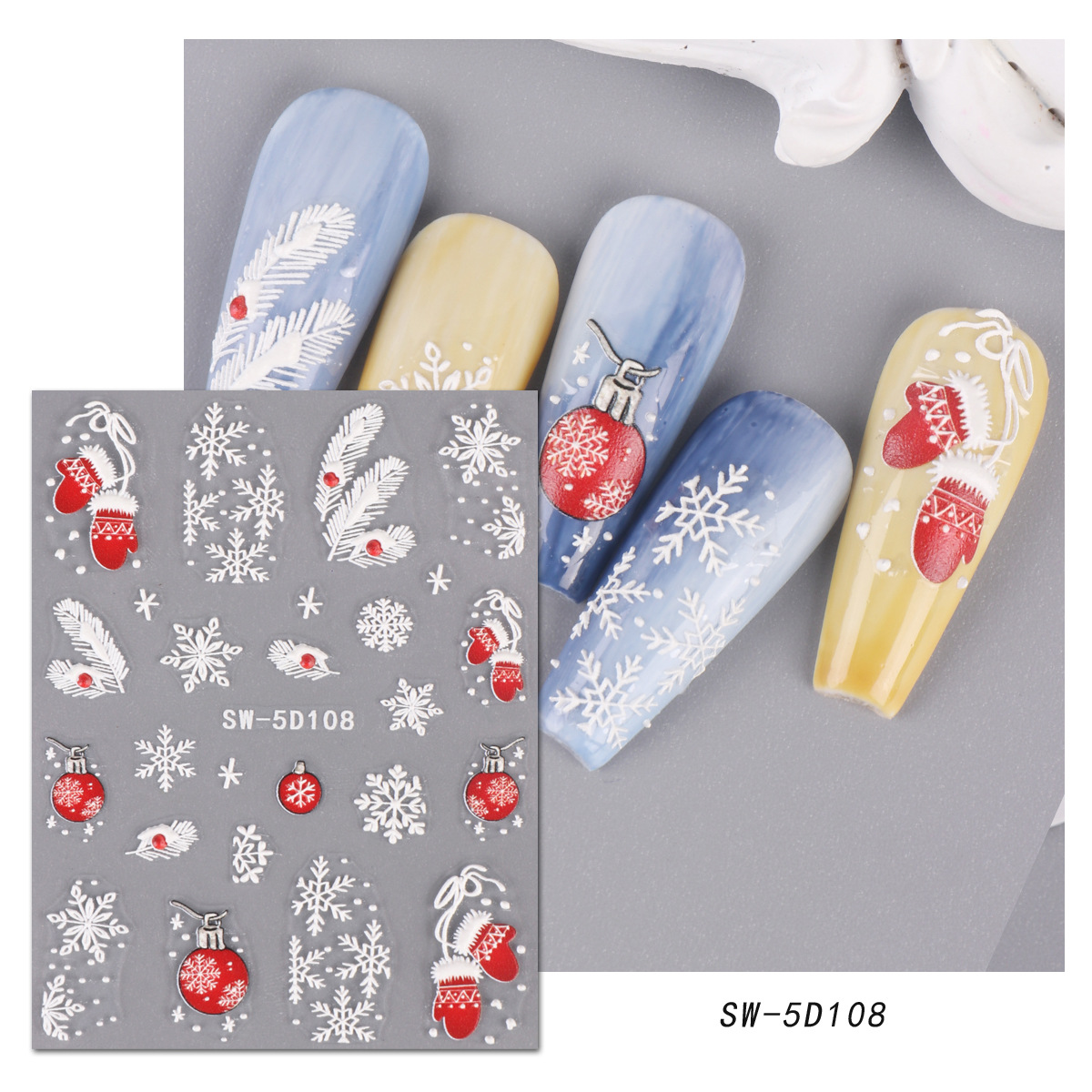 크로스 보더 새로운 네일 아트 스티커 도매 크리스마스 겨울 눈송이 새해 시계 네일 스티커 데칼