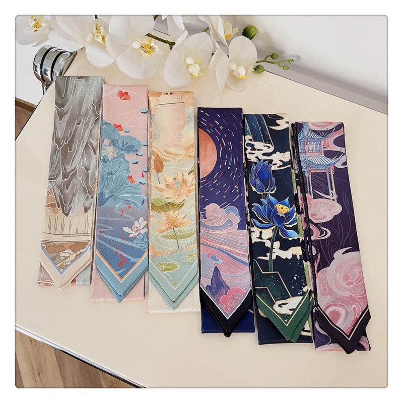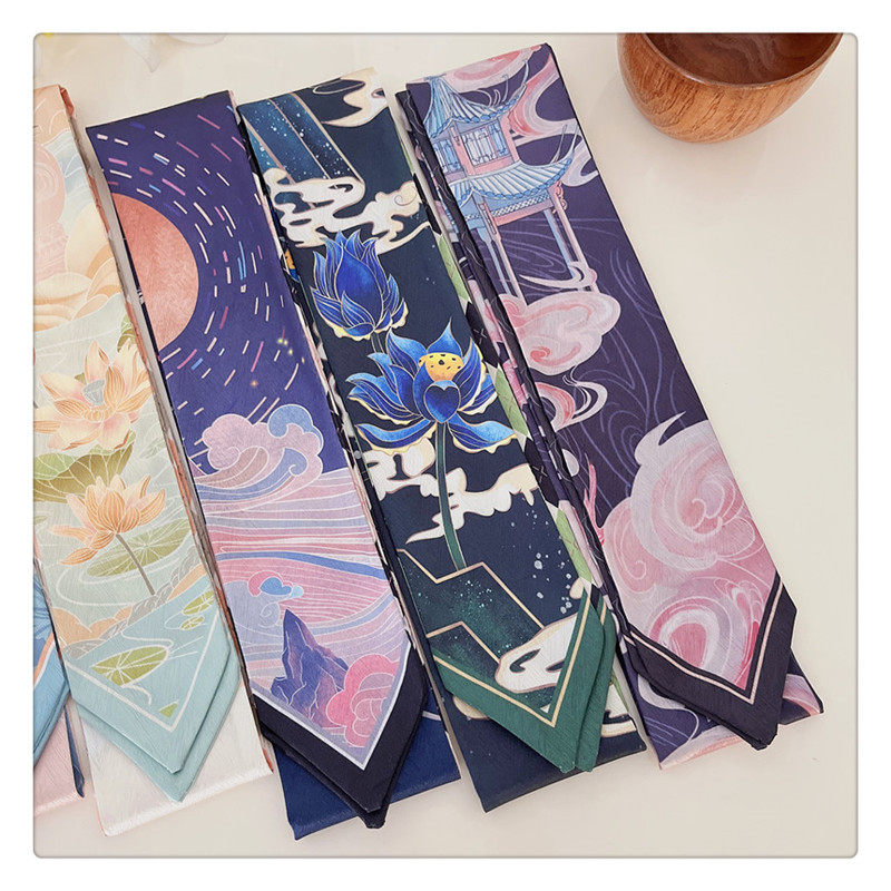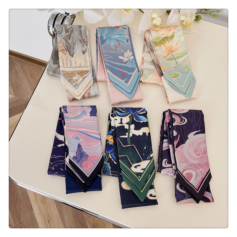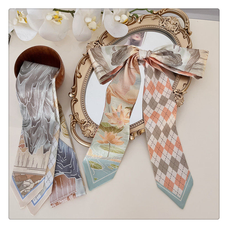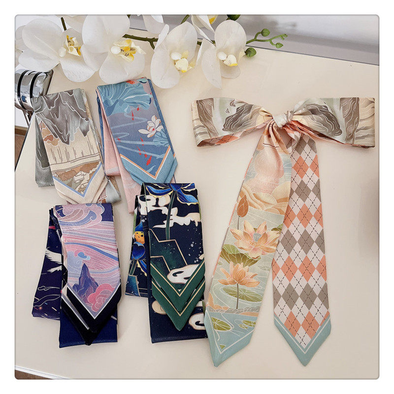 중국 스타일 헤어 밴드 경마 빈티지 장식 작은 실크 스카프 긴 스트립 우아한 넥타이 가방 긴 리본 우아한 리본 소녀
