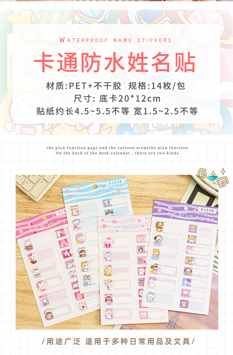 만화 방수 이름 스티커 초등학교 아기 이름 스티커 동물 자체 접착 물 컵 스티커 유치원 등록 용품스토어 가기
