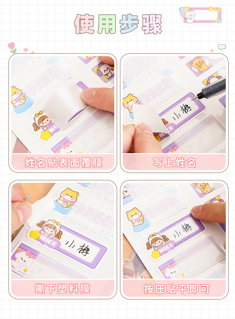 만화 방수 이름 스티커 초등학교 아기 이름 스티커 동물 자체 접착 물 컵 스티커 유치원 등록 용품