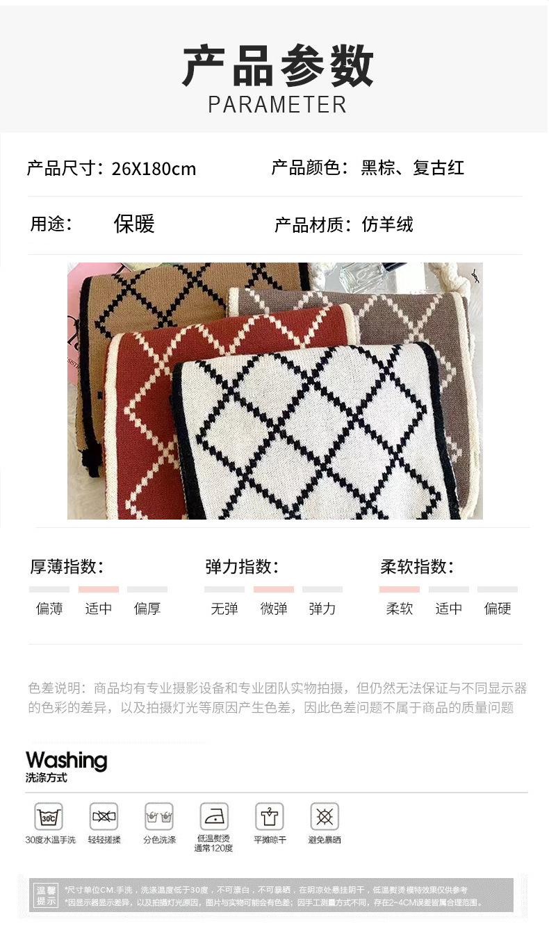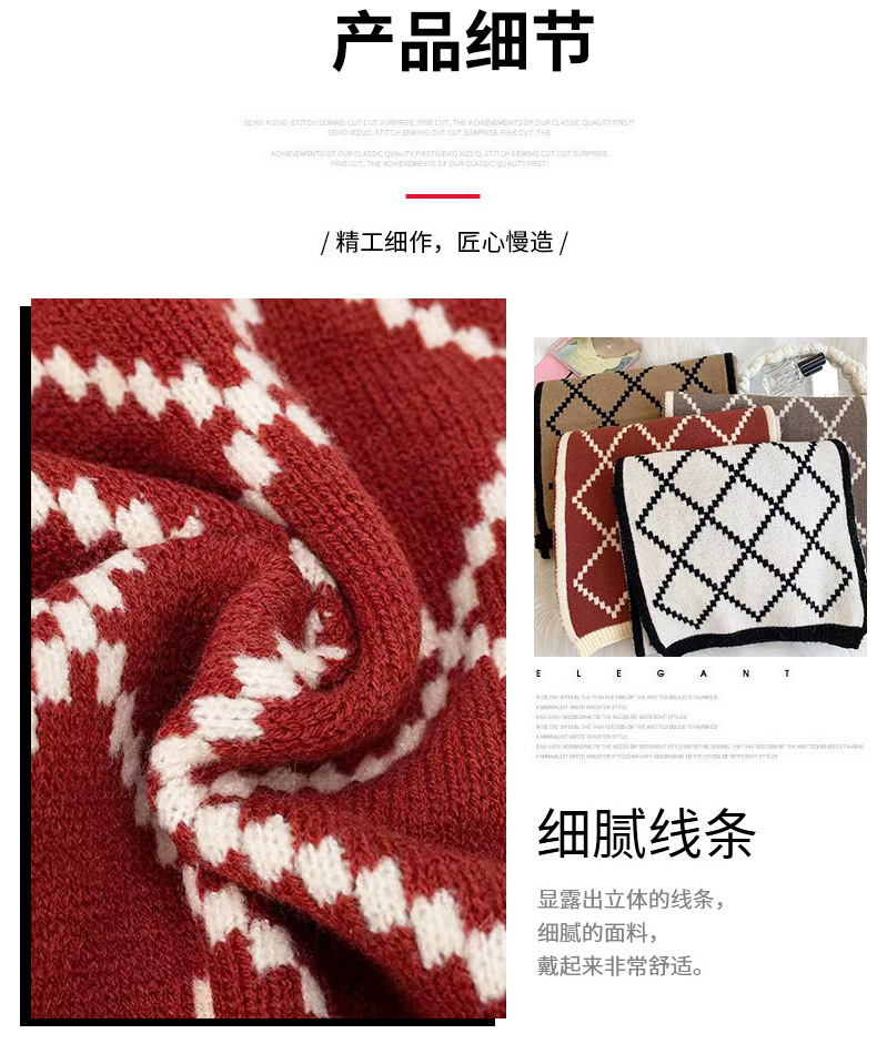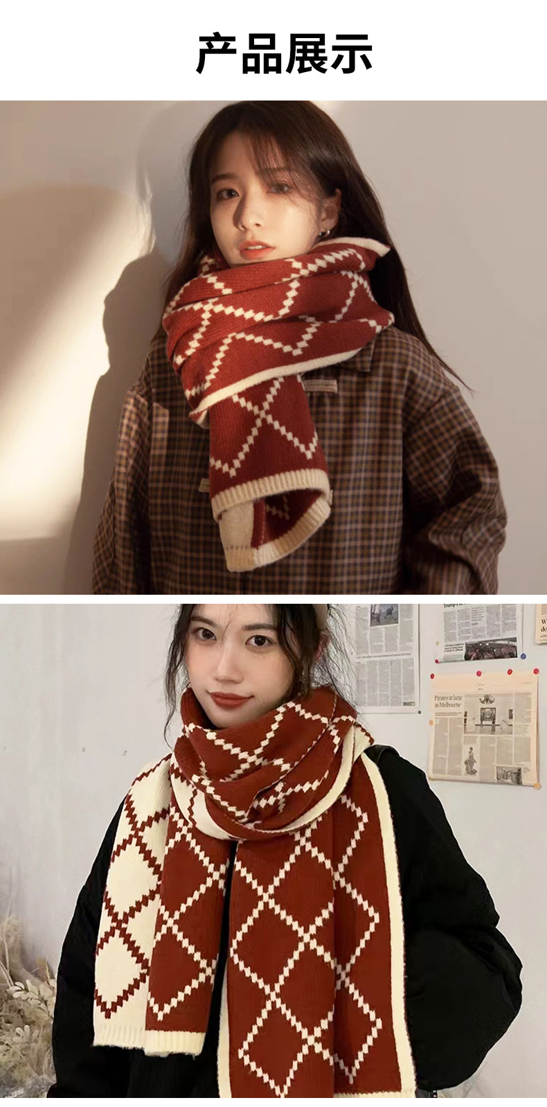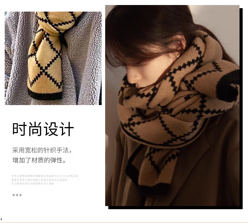 양면 다이아몬드 무늬 니트 울 스카프 여성용 가을 겨울 학생용 보온 목도리 작은 숄 자체 발열 방한스토어 가기