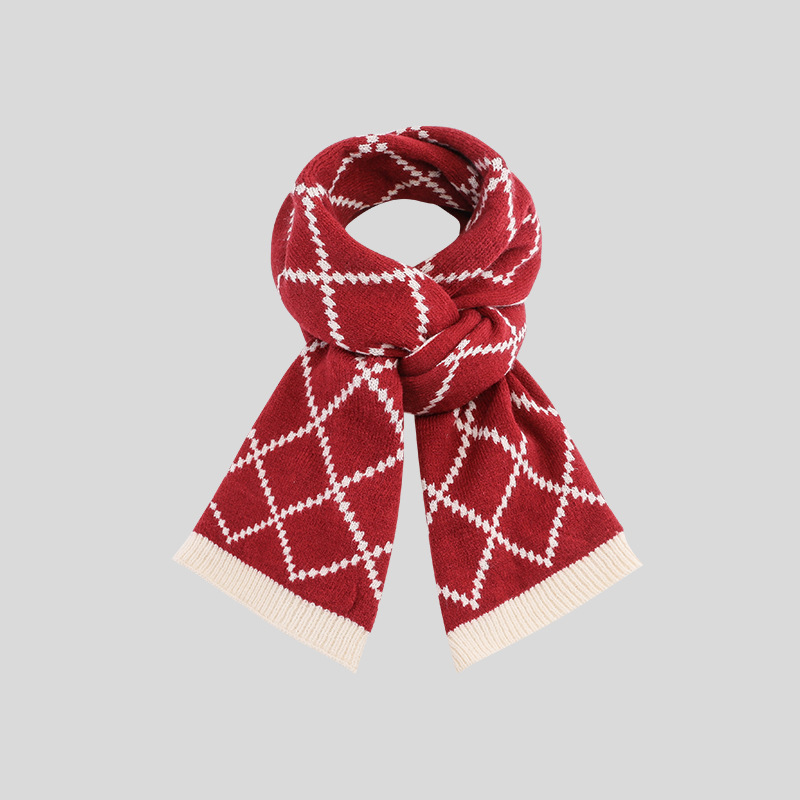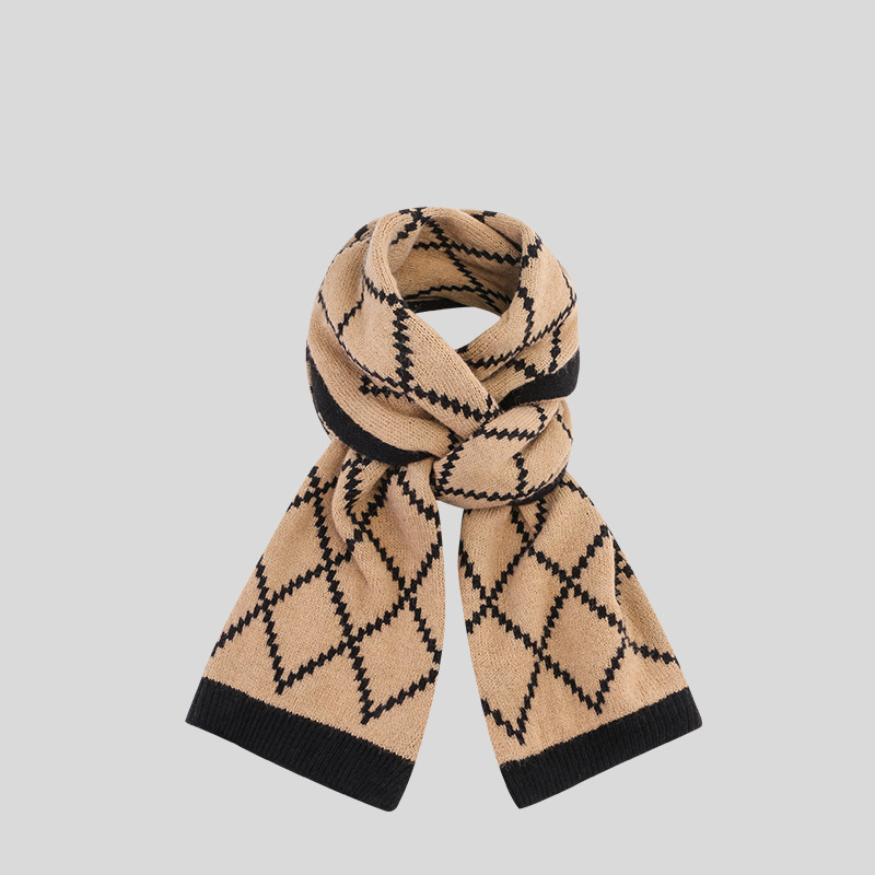 양면 다이아몬드 무늬 니트 울 스카프 여성용 가을 겨울 학생용 보온 목도리 작은 숄 자체 발열 방한