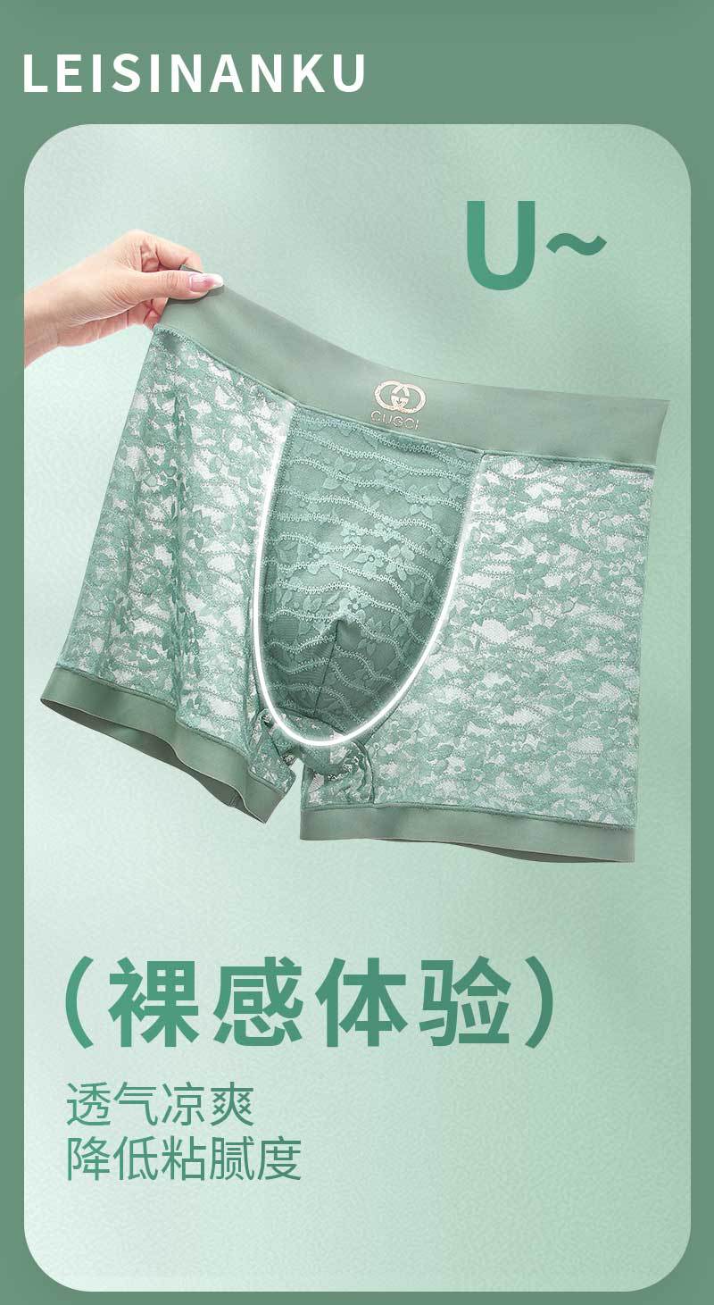 새로운 남자의 속옷 중간 허리 섹시한 레이스 플러스 사이즈 복서 비 추적 통기성 항균 남자의 4 코너 반바지 헤드스토어 가기