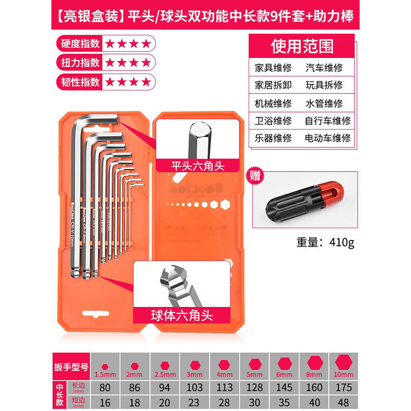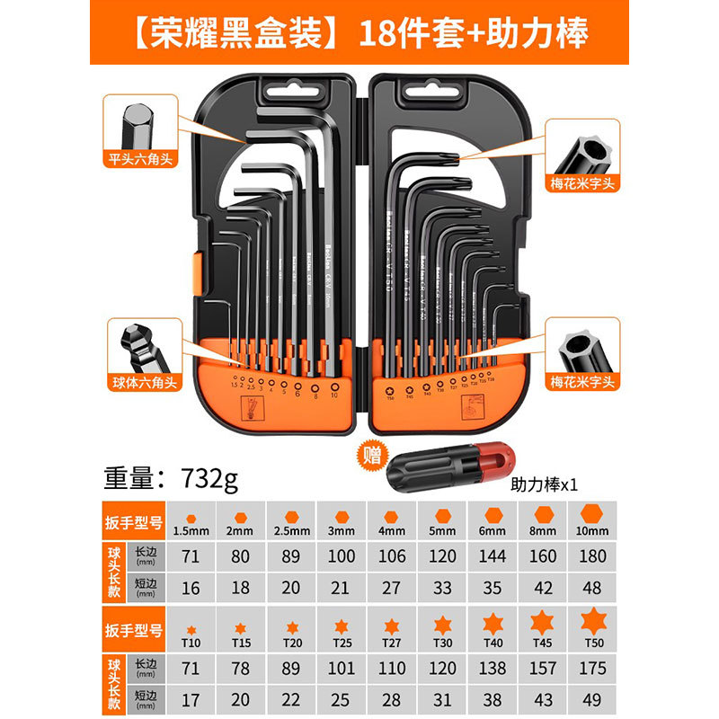 Baolian Allen 렌치 세트 6 각 드라이버 도구 내부 육각 합금 확장 Torx 렌치 미터법스토어 가기
