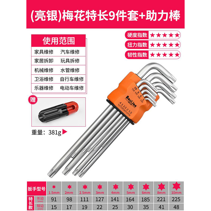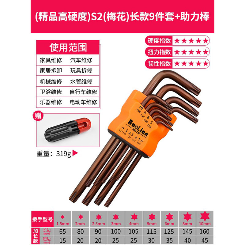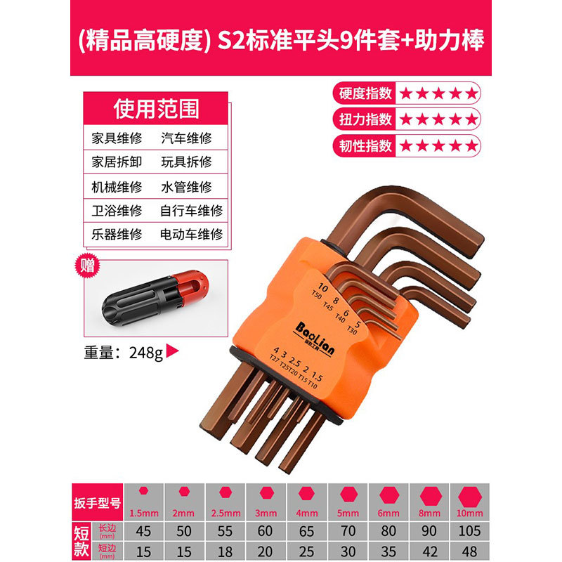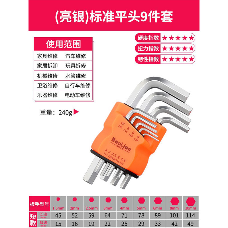 Baolian Allen 렌치 세트 6 각 드라이버 도구 내부 육각 합금 확장 Torx 렌치 미터법