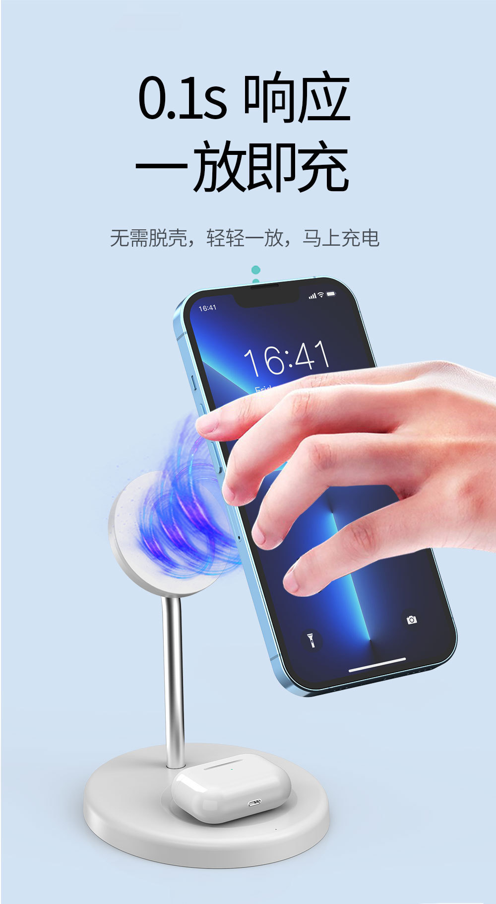 15W 마그네틱 무선 충전기 고속 충전 데스크탑 수직 휴대 전화 헤드셋 2-in -1 간단한 기하학적 충전 스탠드