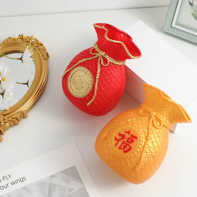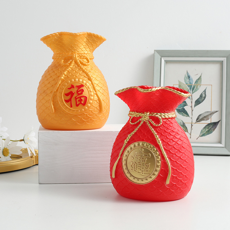 플라스틱 럭키 백 꽃병 홈 거실 꽃 장식 꽃병 새 중국 럭키 백 큰 밀 귀 꽃병