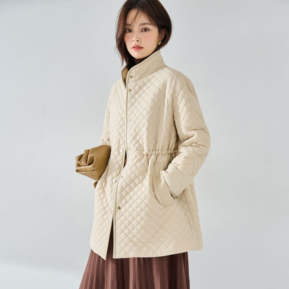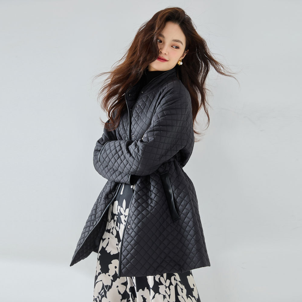 精致的小格子绗棉面料,腰部有调节扣,可调节腰节收腰显瘦。