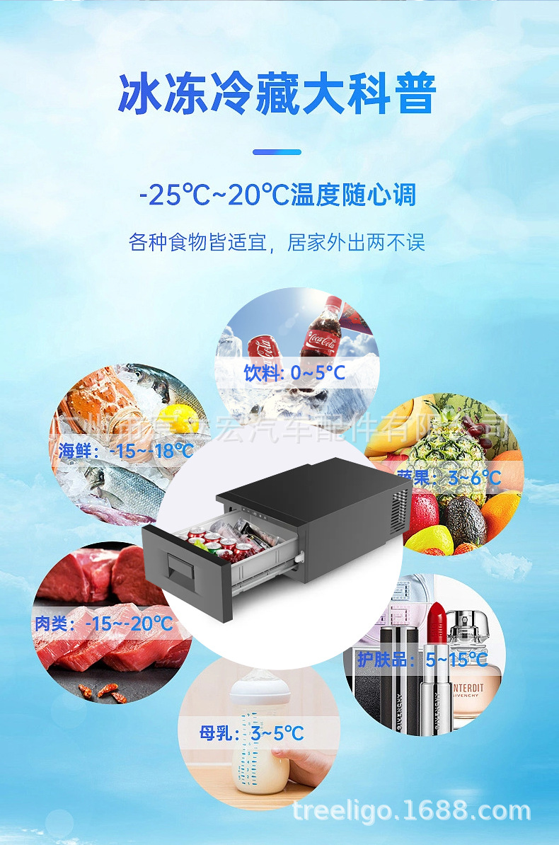 Treeligo 자동차 서랍형 RV 냉장고 12v24v 야외 피크닉 모바일 냉동고 자동차 냉장고