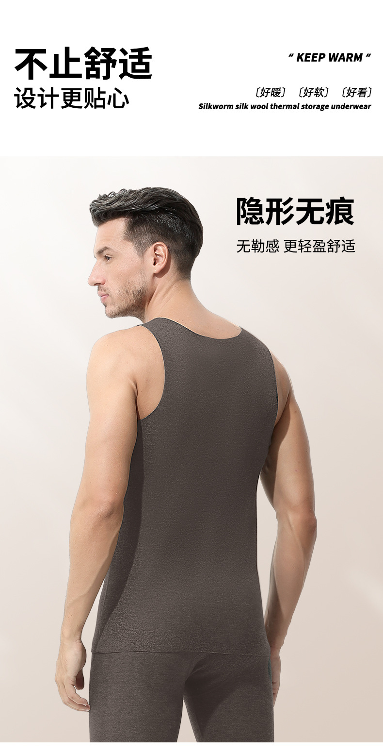 새로운 남성 따뜻한 조끼 실크 울 가을과 겨울 단색 민소매 조끼 원활한 바닥 조끼 재고스토어 가기