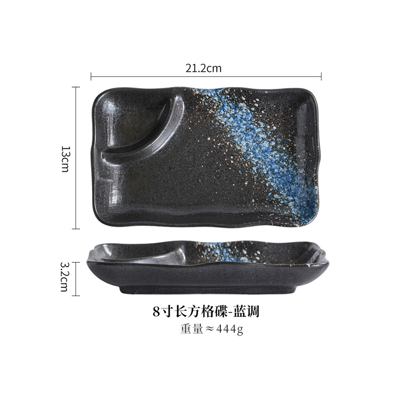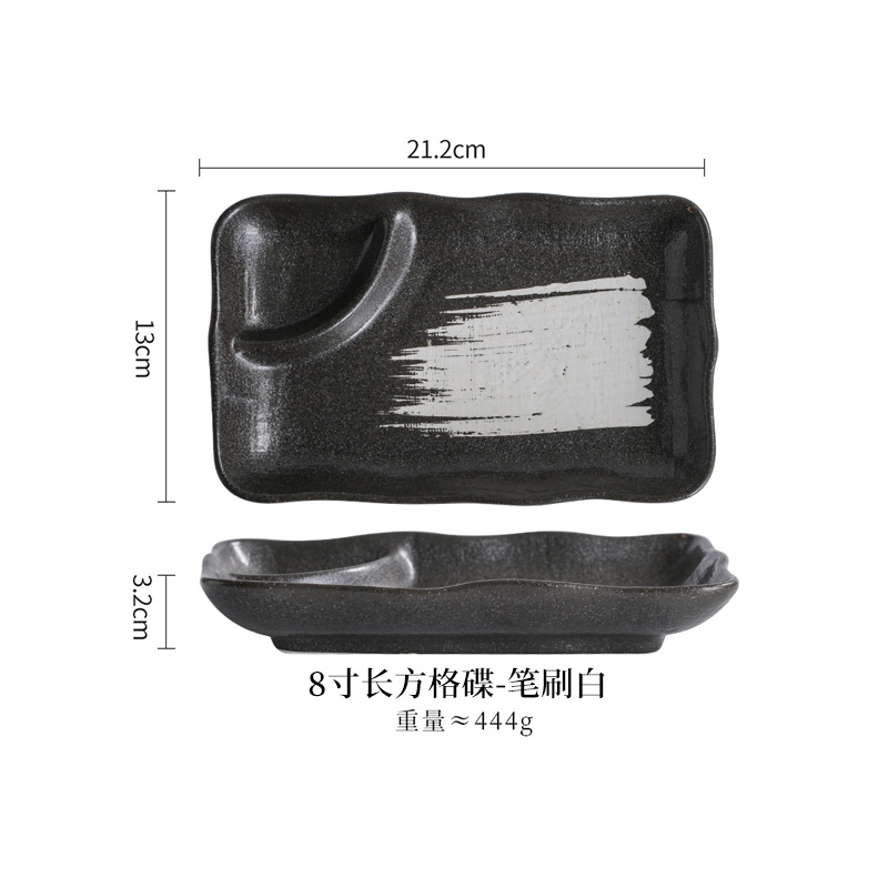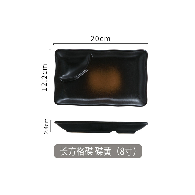 일본식 식기 직사각형 식초 딥 스플릿 만두 플레이트 빈티지 세라믹 플레이트 창조적 인 스시 바베큐 플레이트