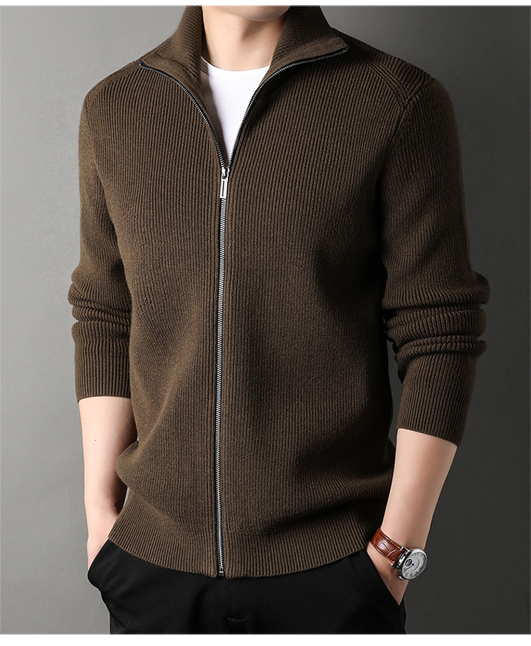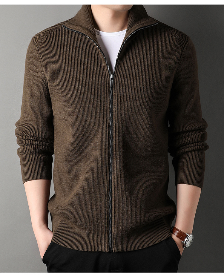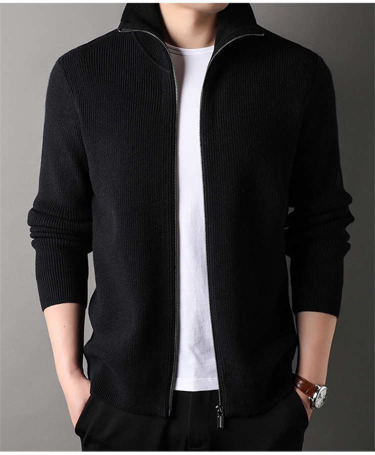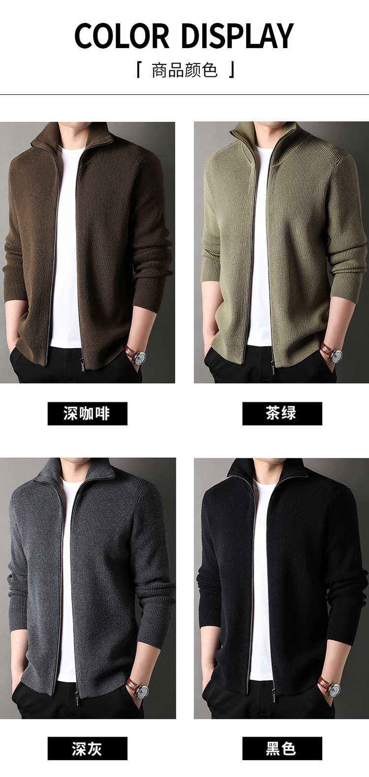 가을과 겨울 새로운 지퍼 니트웨어 가디건 느슨한 단색 중년 남성 100 울 스웨터 탑
