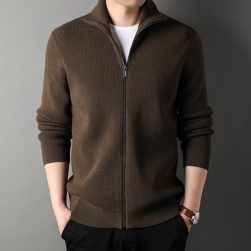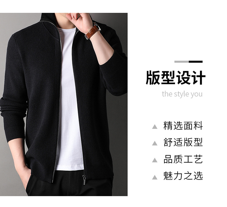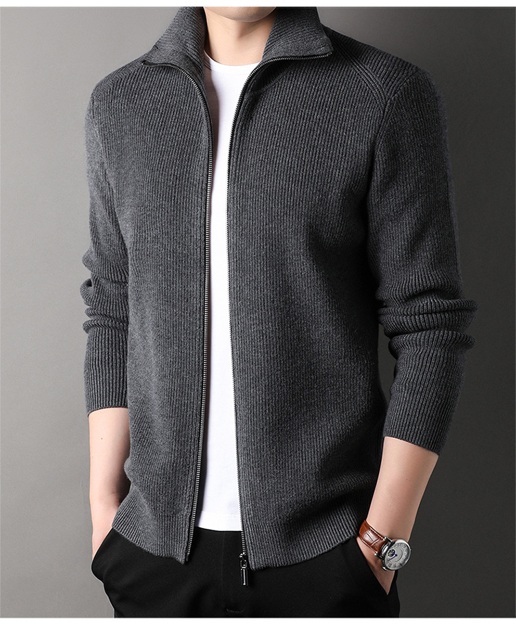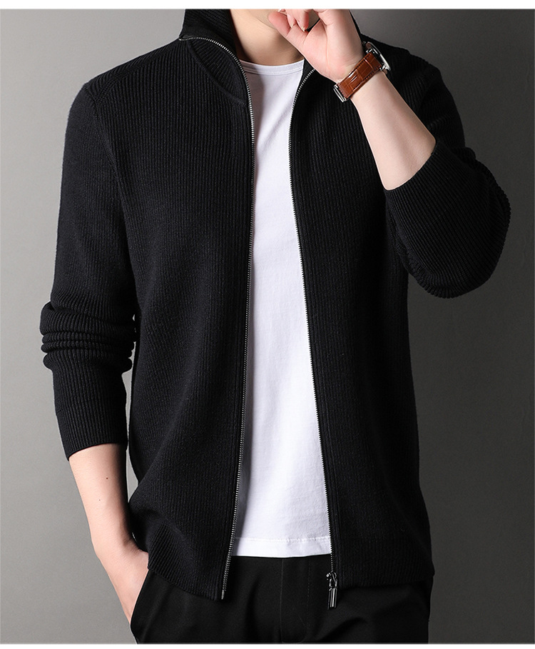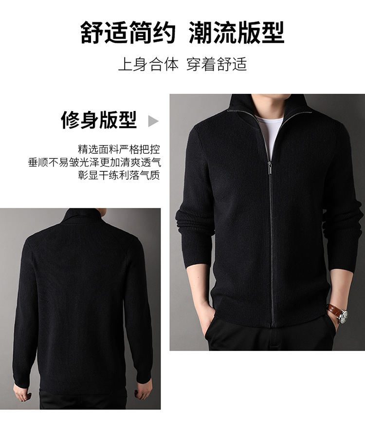 가을과 겨울 새로운 지퍼 니트웨어 가디건 느슨한 단색 중년 남성 100 울 스웨터 탑