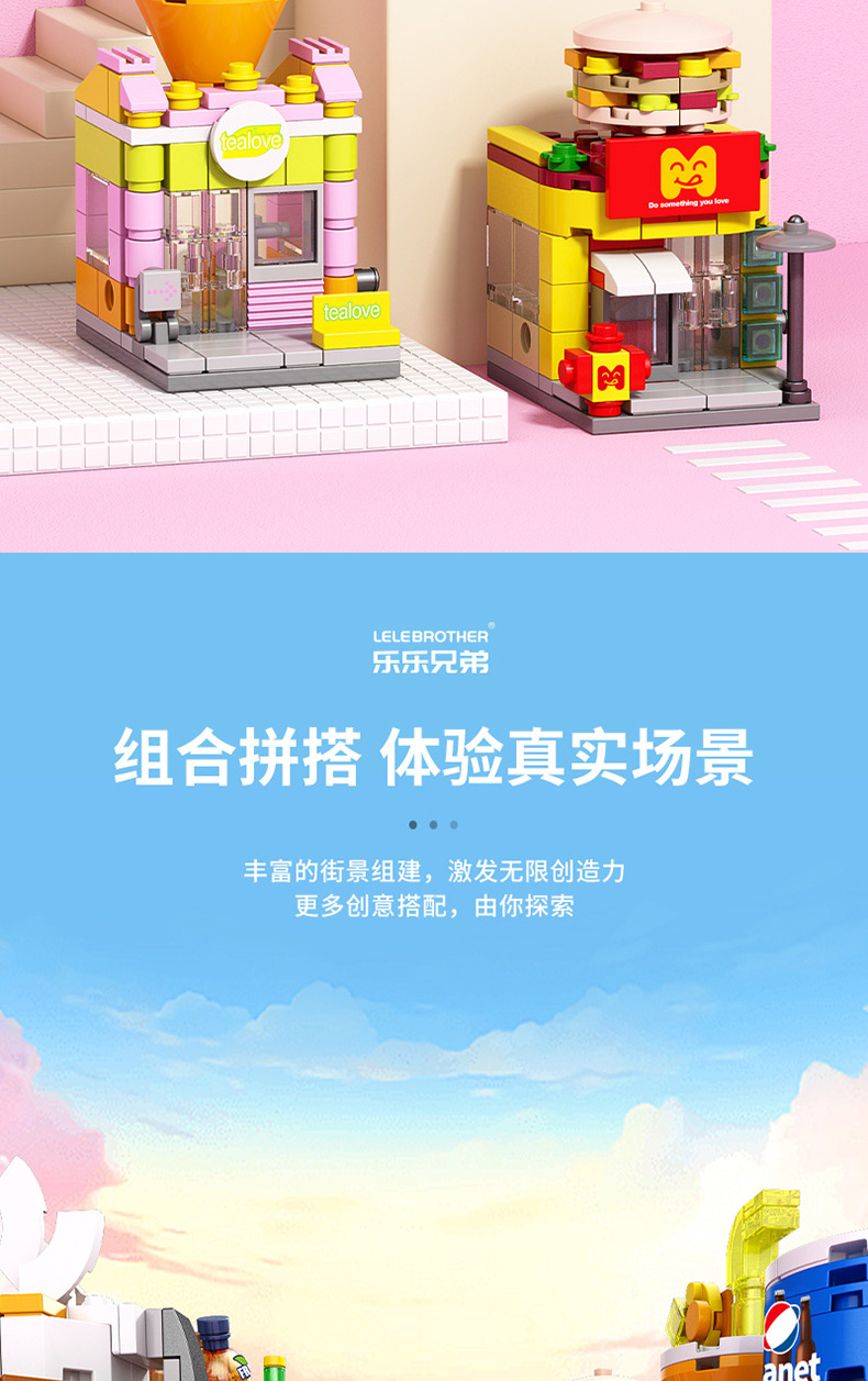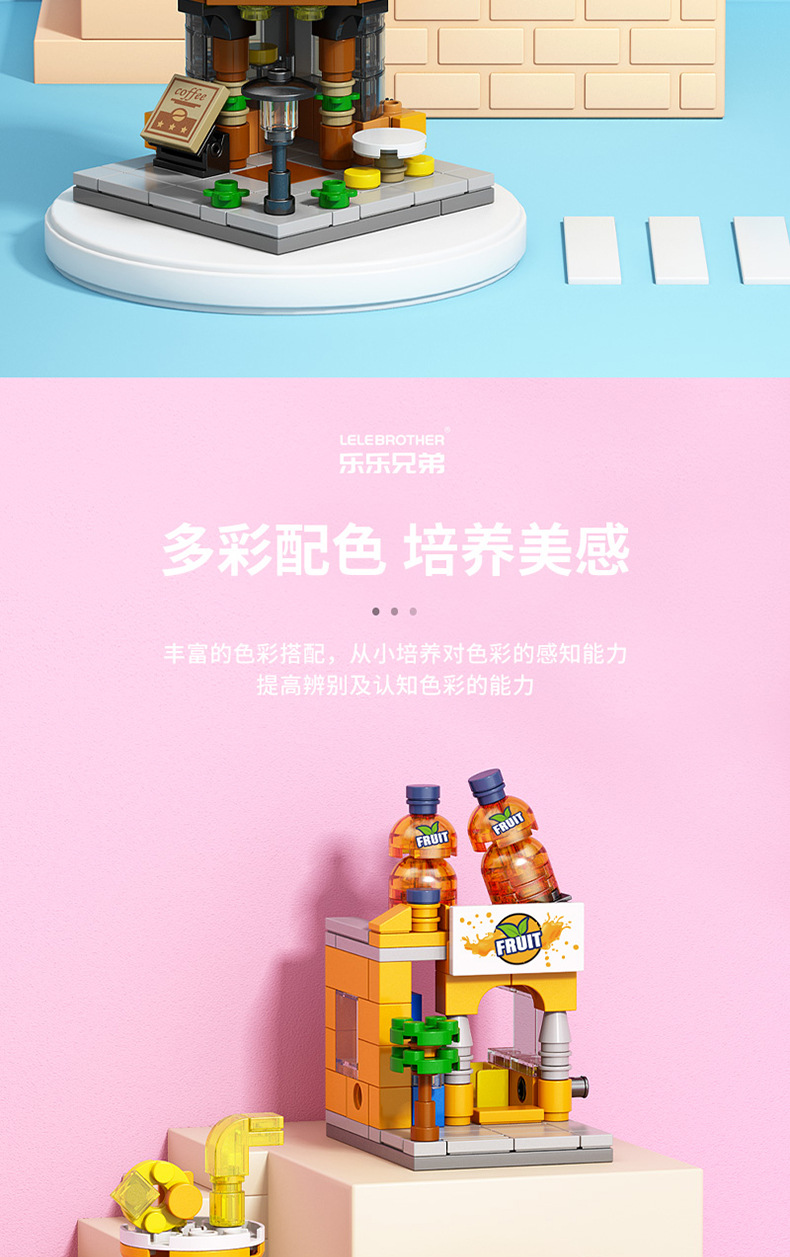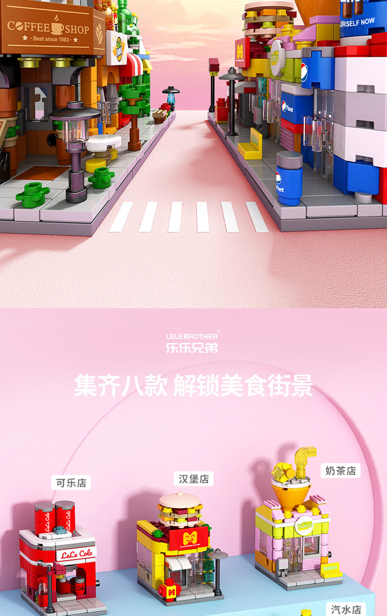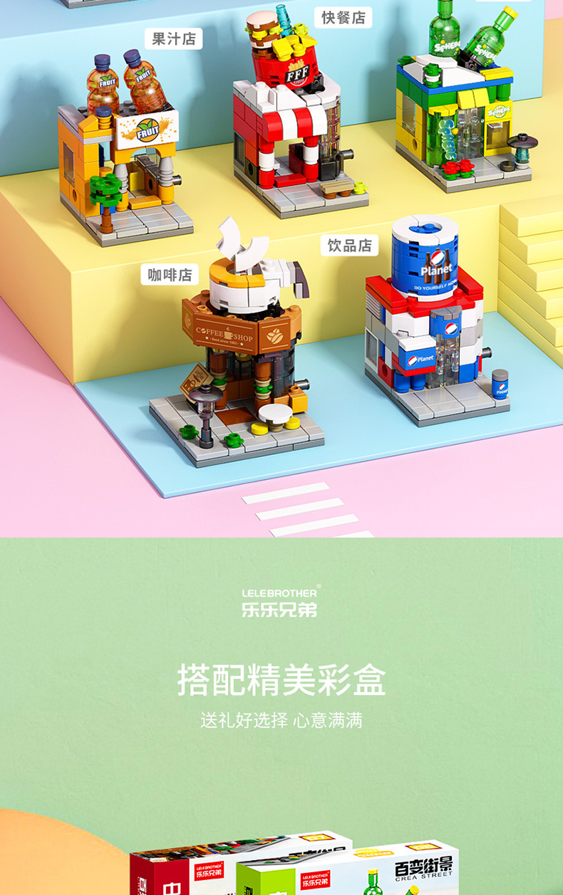 Lele Brothers 빌딩 블록 스트리트 뷰 어린이 교육 조립 장난감 소년 가게 퍼즐 빌딩 모델 하우스 선물스토어 가기