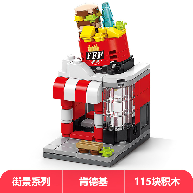 Lele Brothers 빌딩 블록 스트리트 뷰 어린이 교육 조립 장난감 소년 가게 퍼즐 빌딩 모델 하우스 선물