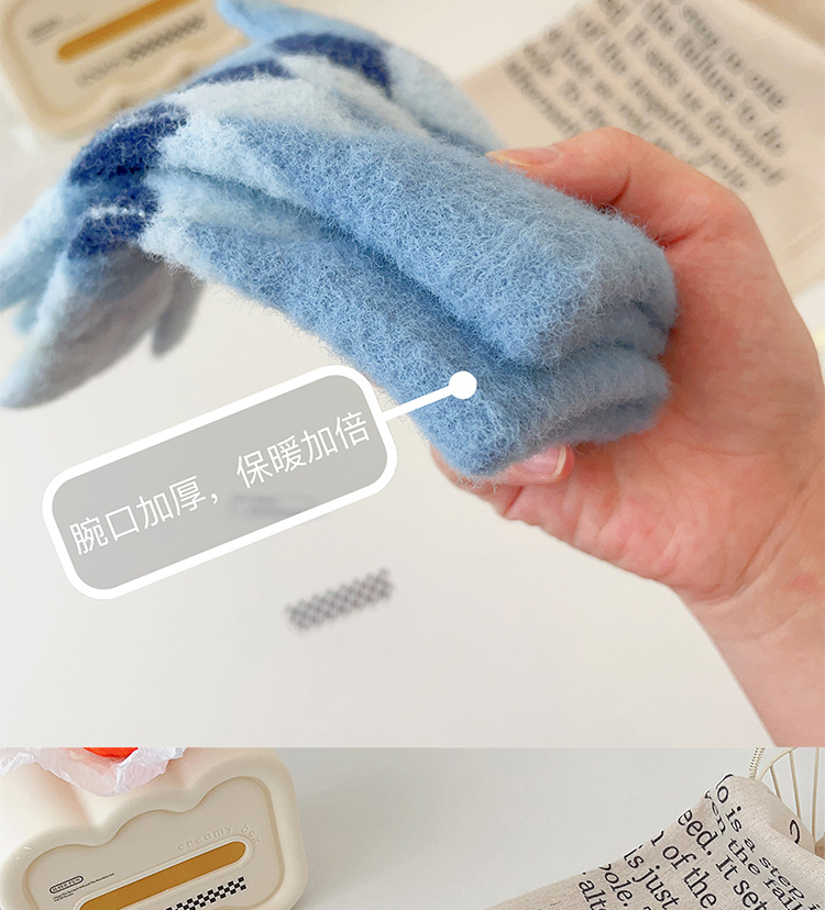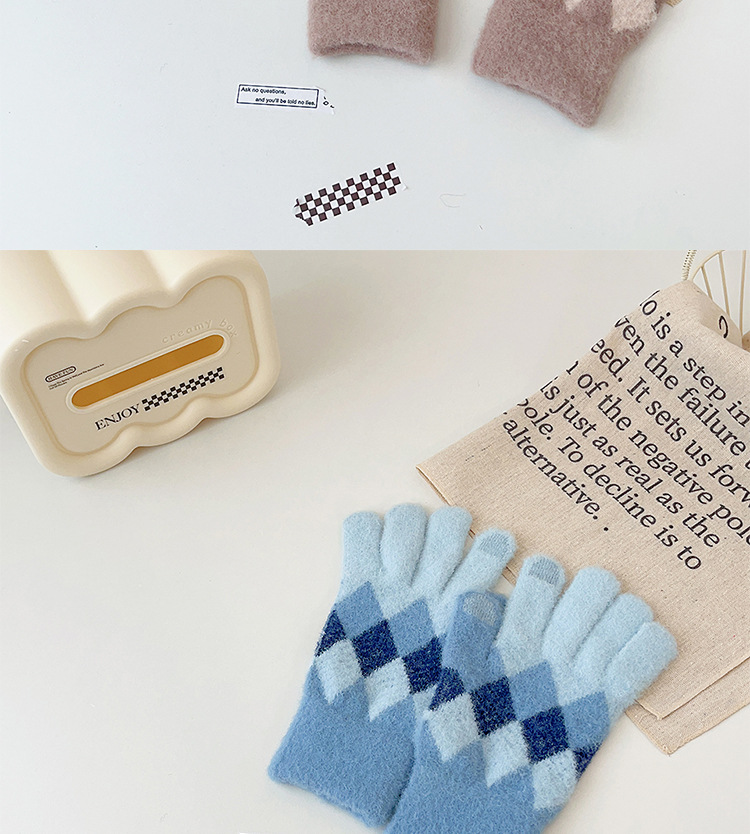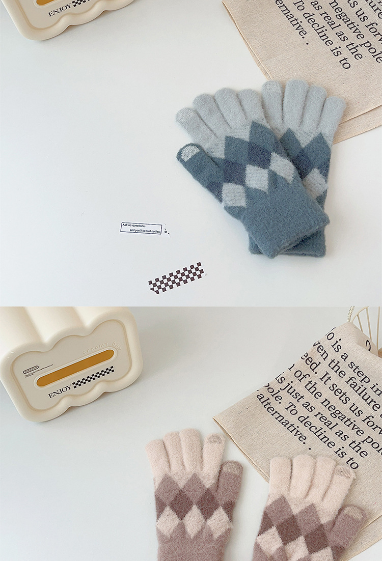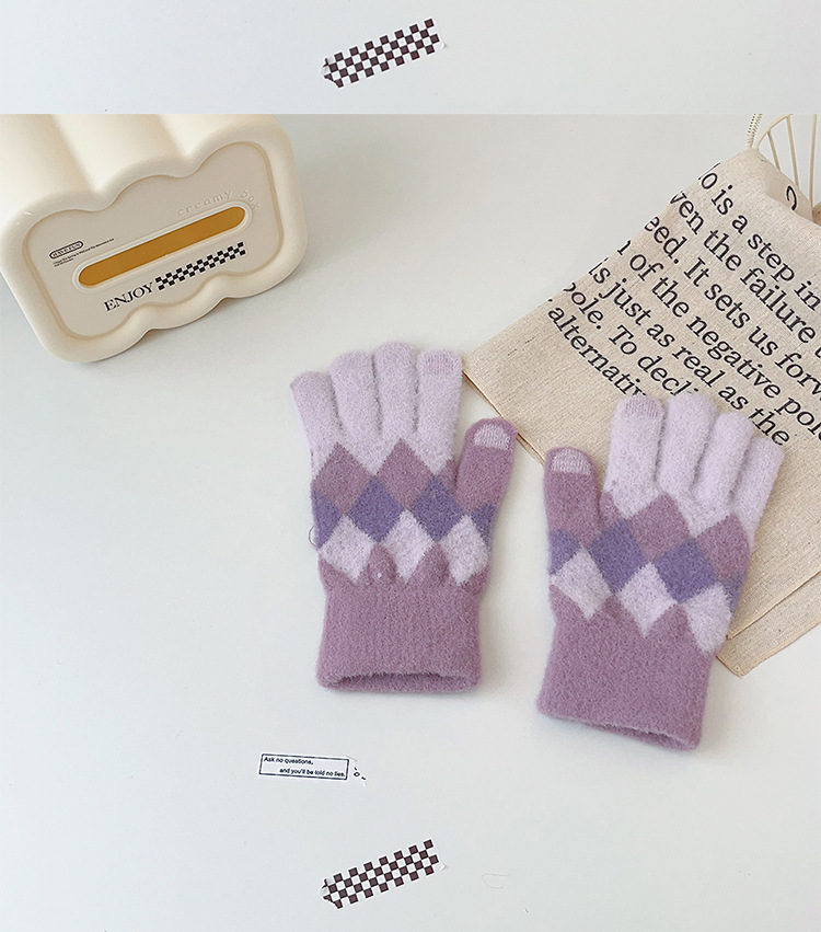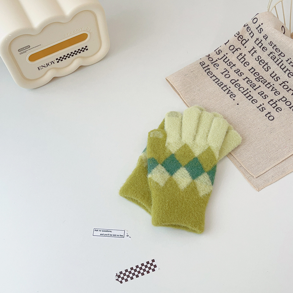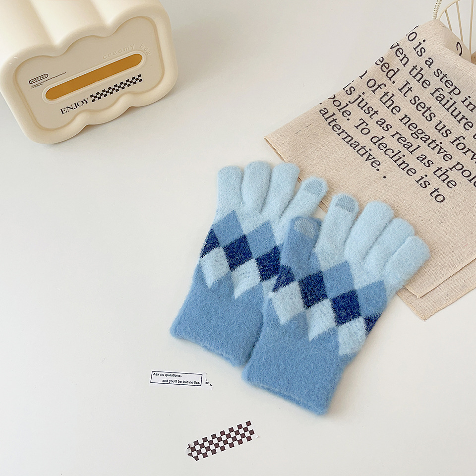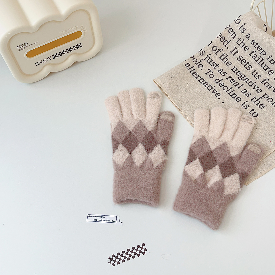 한국식 그라디언트 다이아몬드 스퀘어 격자 무늬 따뜻한 사이클링 장갑 여성용 가을과 겨울 방한 니트 풀 핑거 터치 스크린 크로스 보더스토어 가기