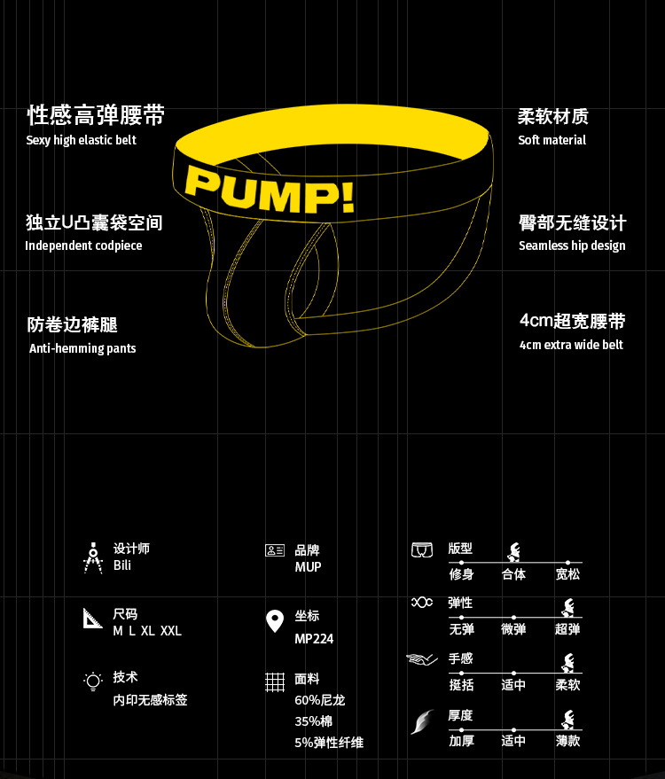 PUMP 국경 간 대외 무역 낙서 인쇄 남성용 T 자형 속옷 시원한 바람 낮은 허리 통기성 편안한 더블 Ding MP224