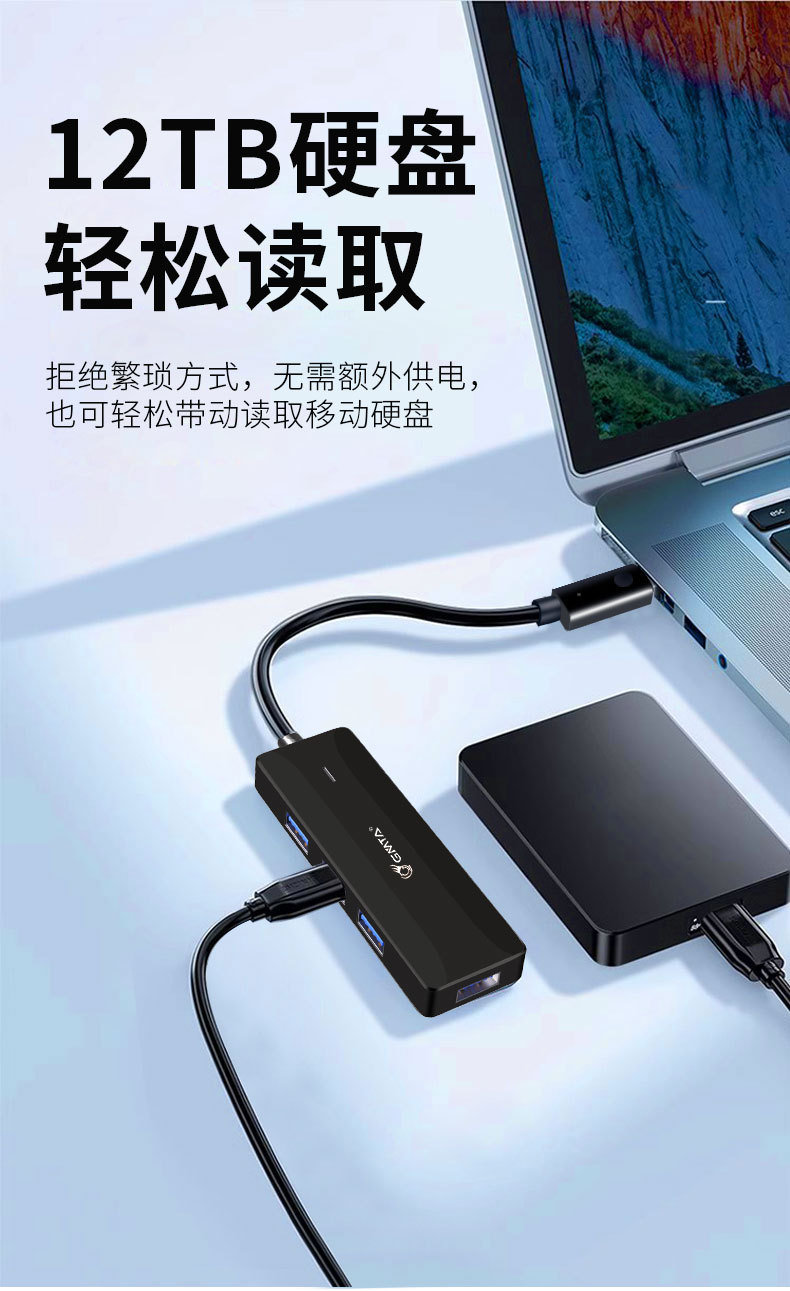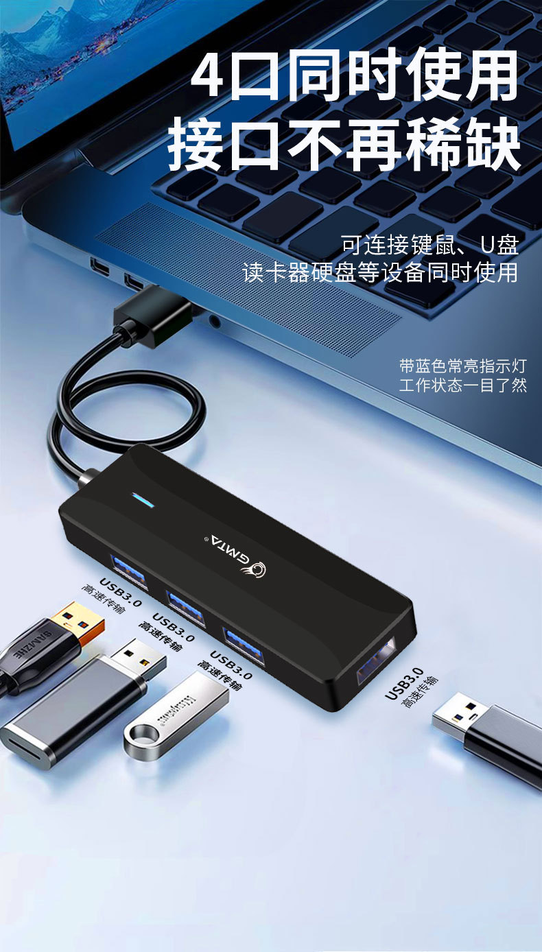 USB3.0 스플리터 1 대 4 고속 허브 다기능 컴퓨터 허브 노트북 도킹 스테이션 4 대 1