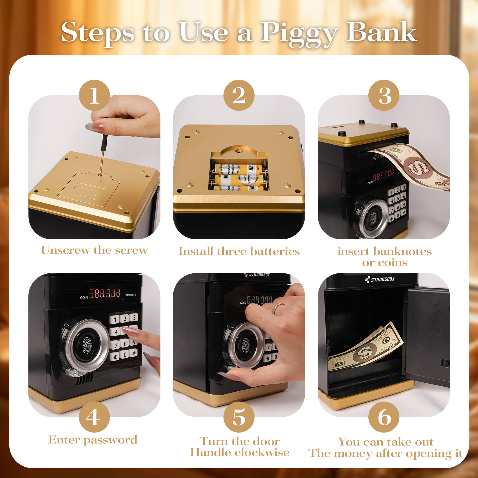 국경 간 어린이 금고 소형 미니 돼지 저금통 금고 지문 호텔 도난 방지 비밀번호