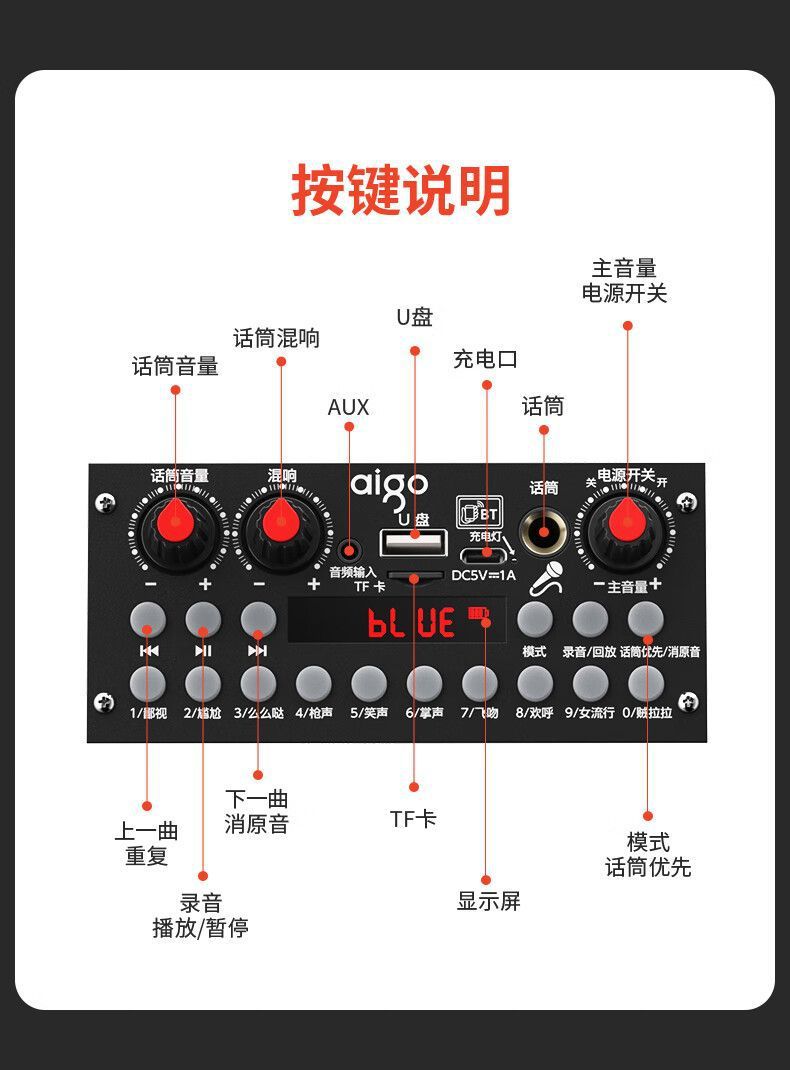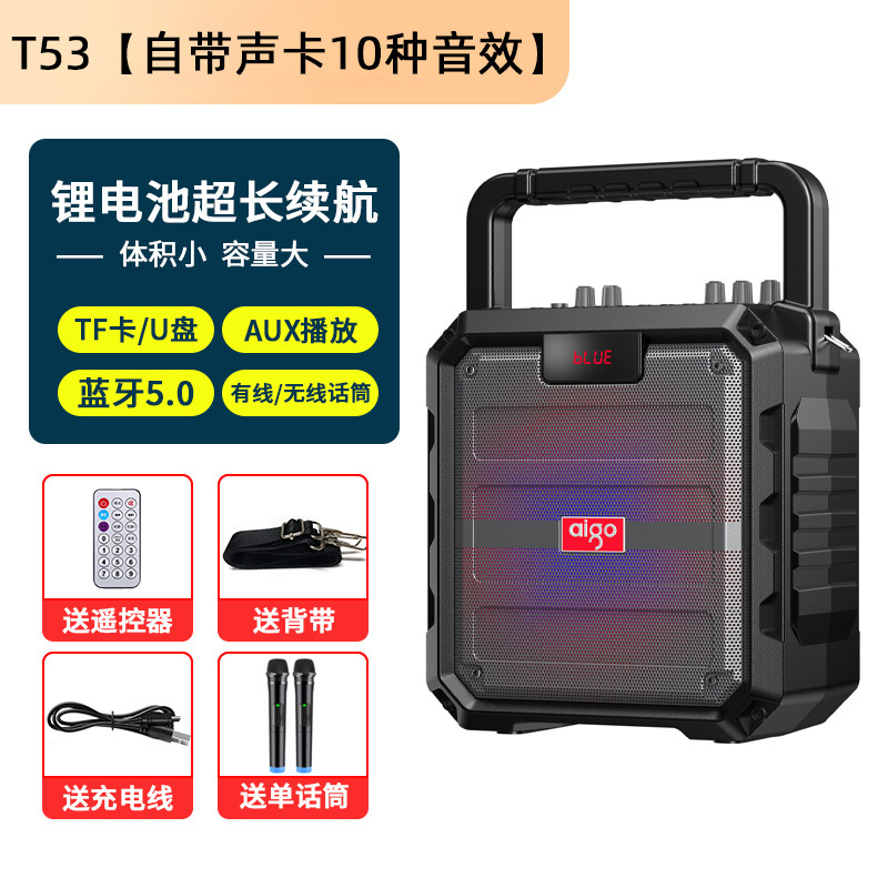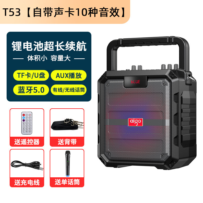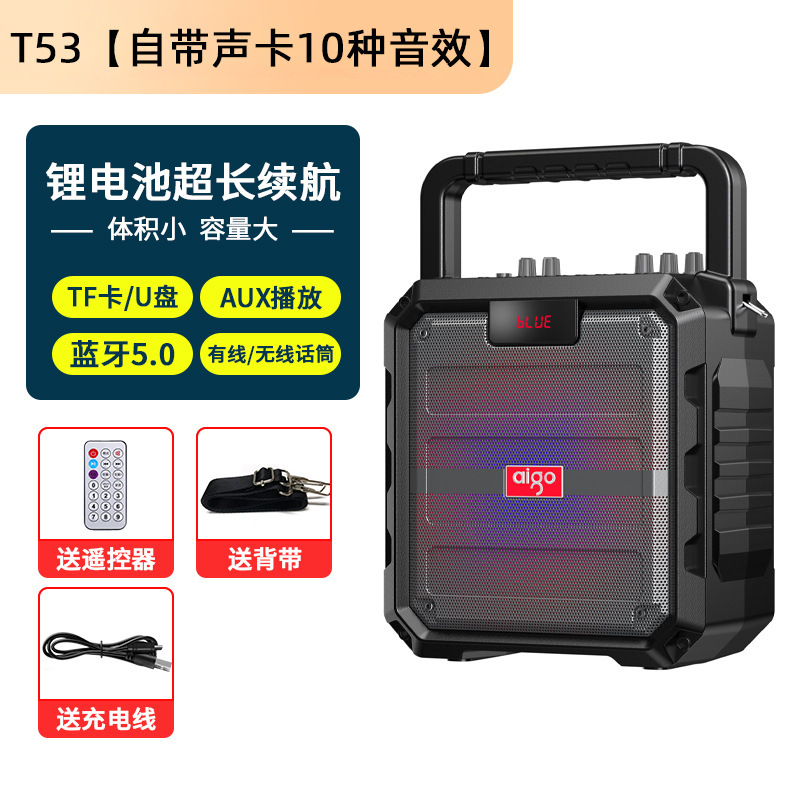 Aigo T53 블루투스 오디오 대용량 휴대용 야외 가라오케 스퀘어 댄스 스피커 홈 사운드 카드 특수 효과베이스