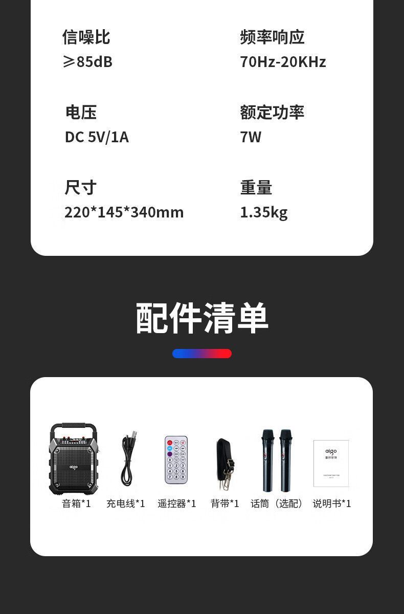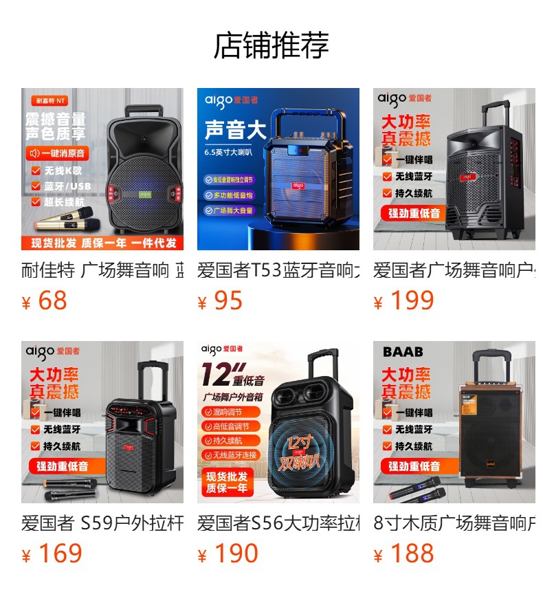 Aigo T53 블루투스 오디오 대용량 휴대용 야외 가라오케 스퀘어 댄스 스피커 홈 사운드 카드 특수 효과베이스스토어 가기