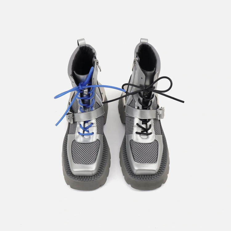 소가죽 버전 ~ 트렌디 한 미래 전사 스타일 금속 시트 장식 패션 부츠 여성용 오토바이 스타일 두꺼운 바닥 짧은 배럴 마틴 부츠스토어 가기
