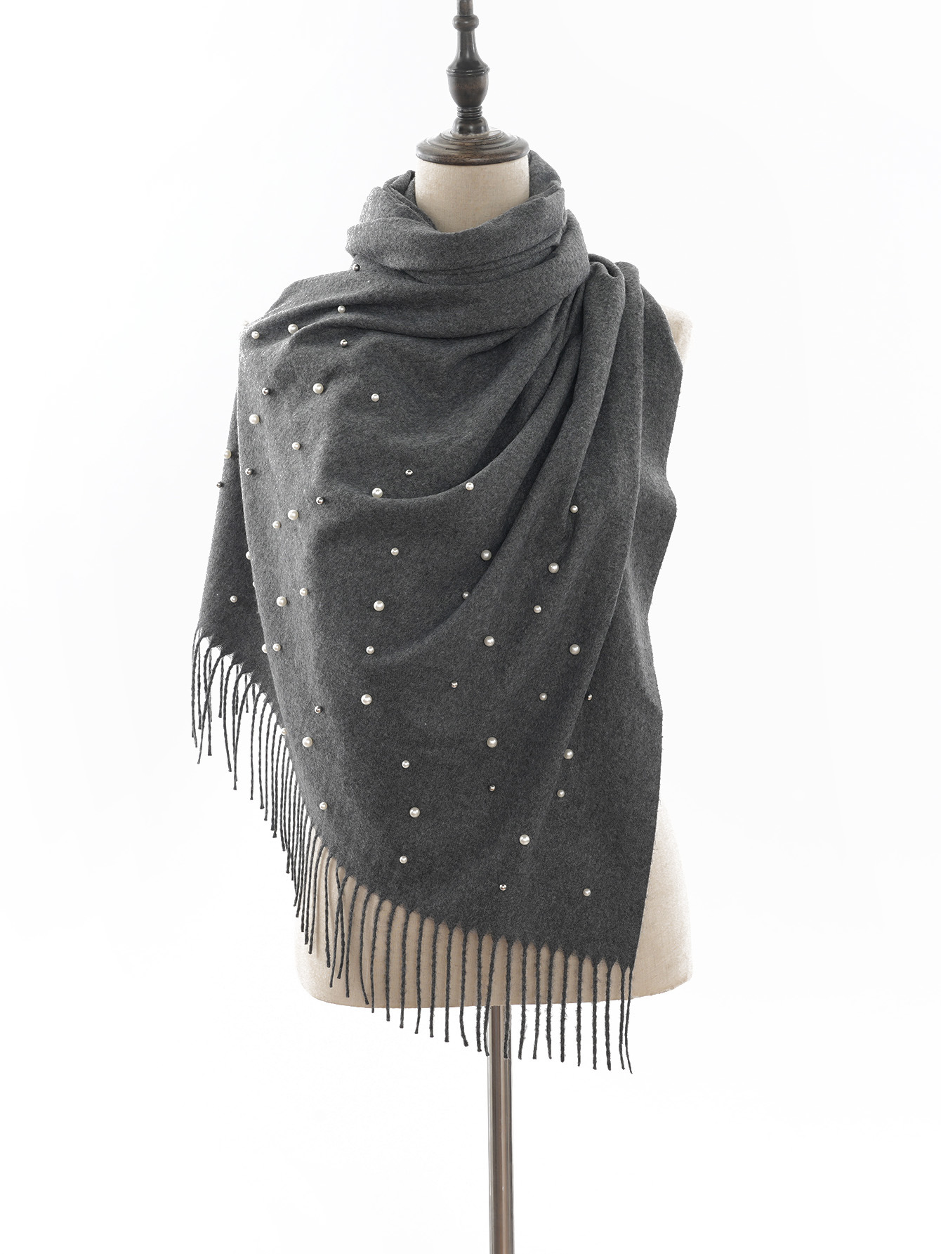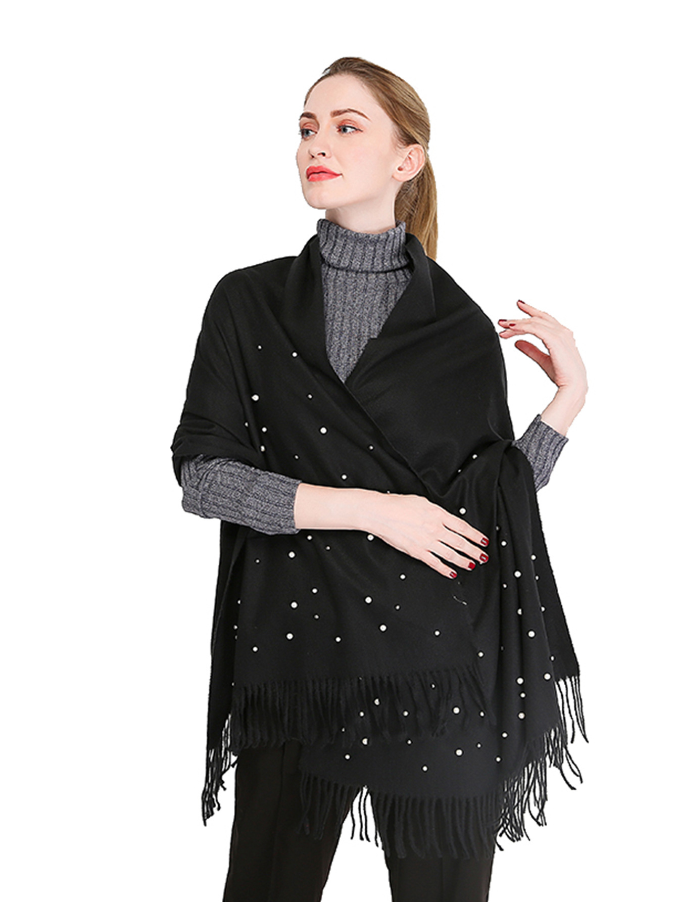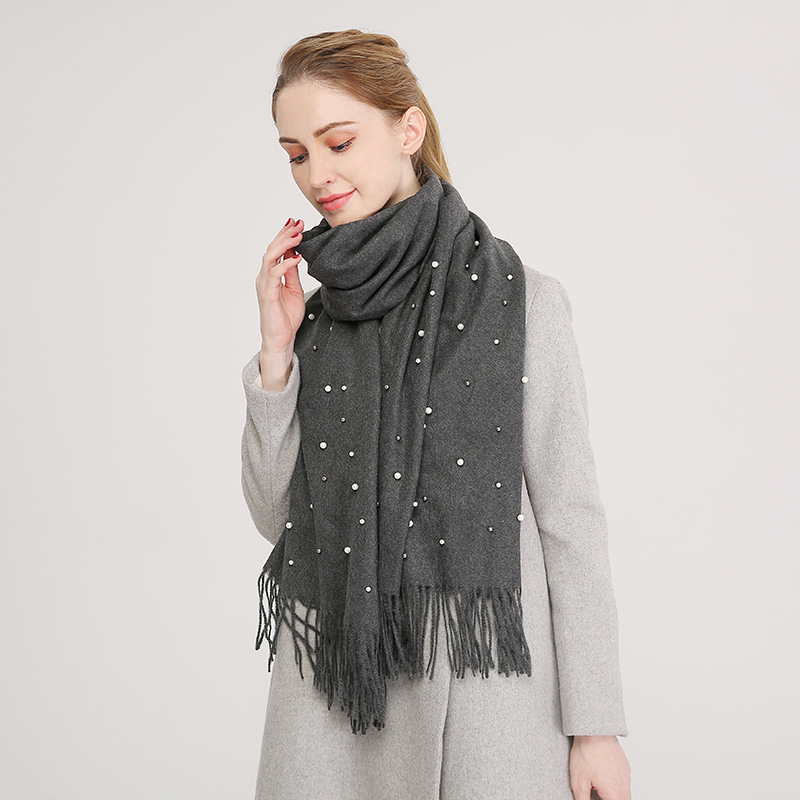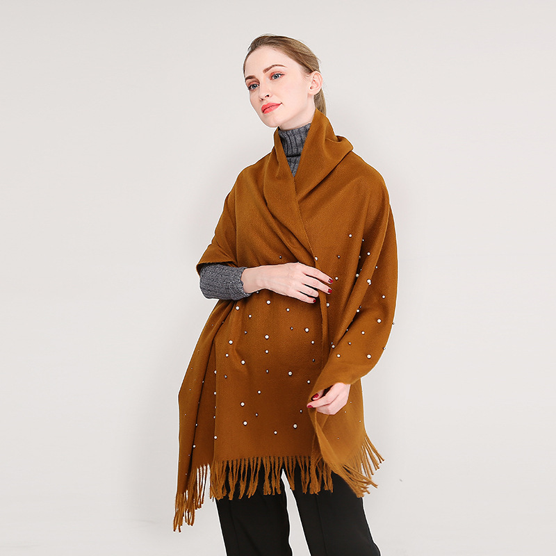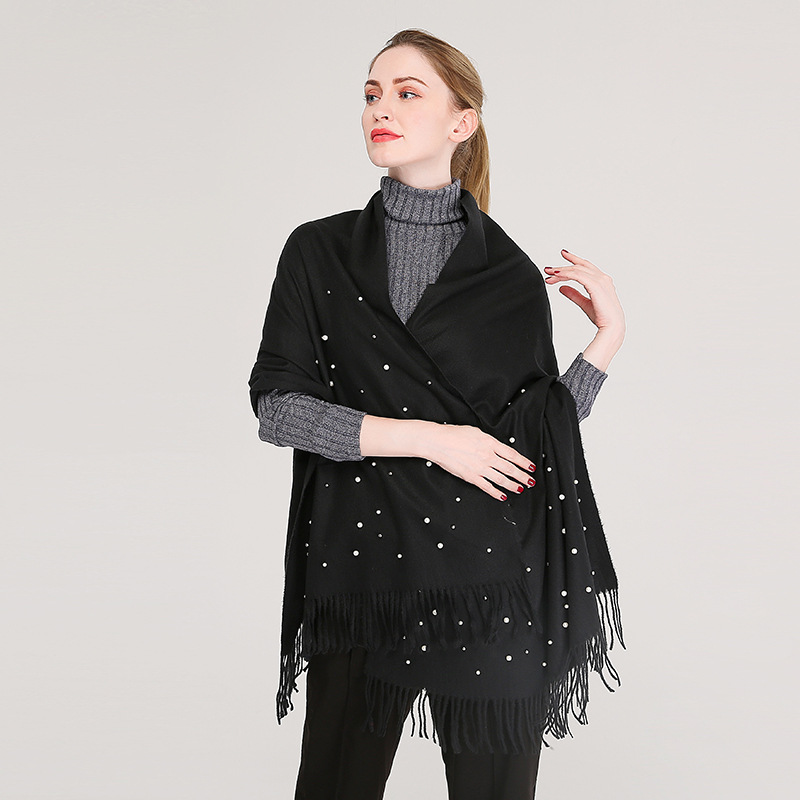 유럽과 미국의 뜨거운 판매 새로운 가을과 겨울 캐시미어 단색 박제 머리 구슬 숄 두꺼운 따뜻한 술 여성 스카프스토어 가기