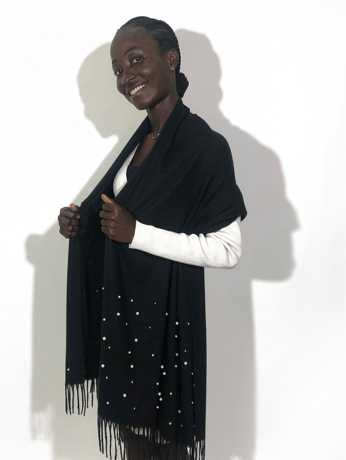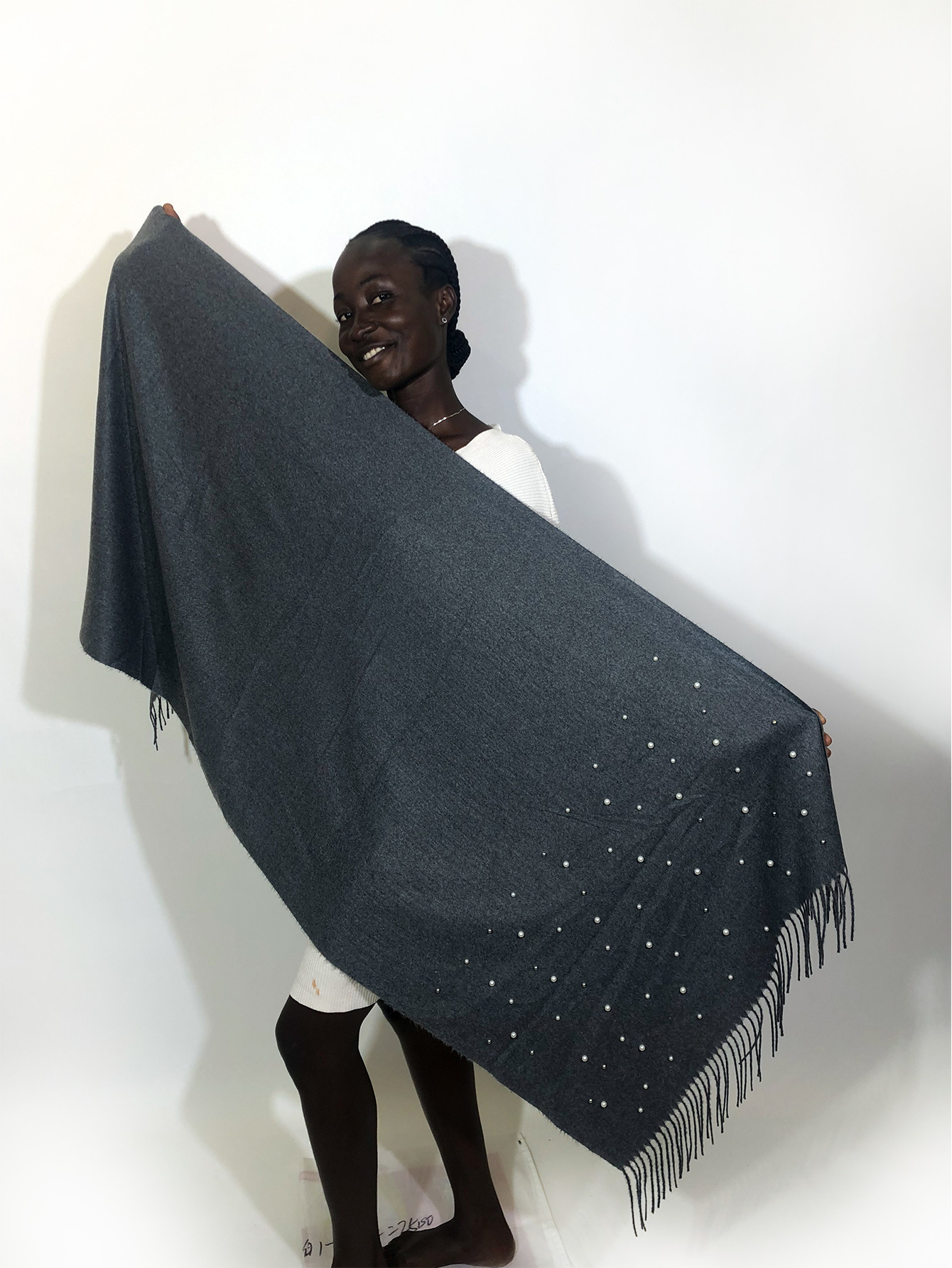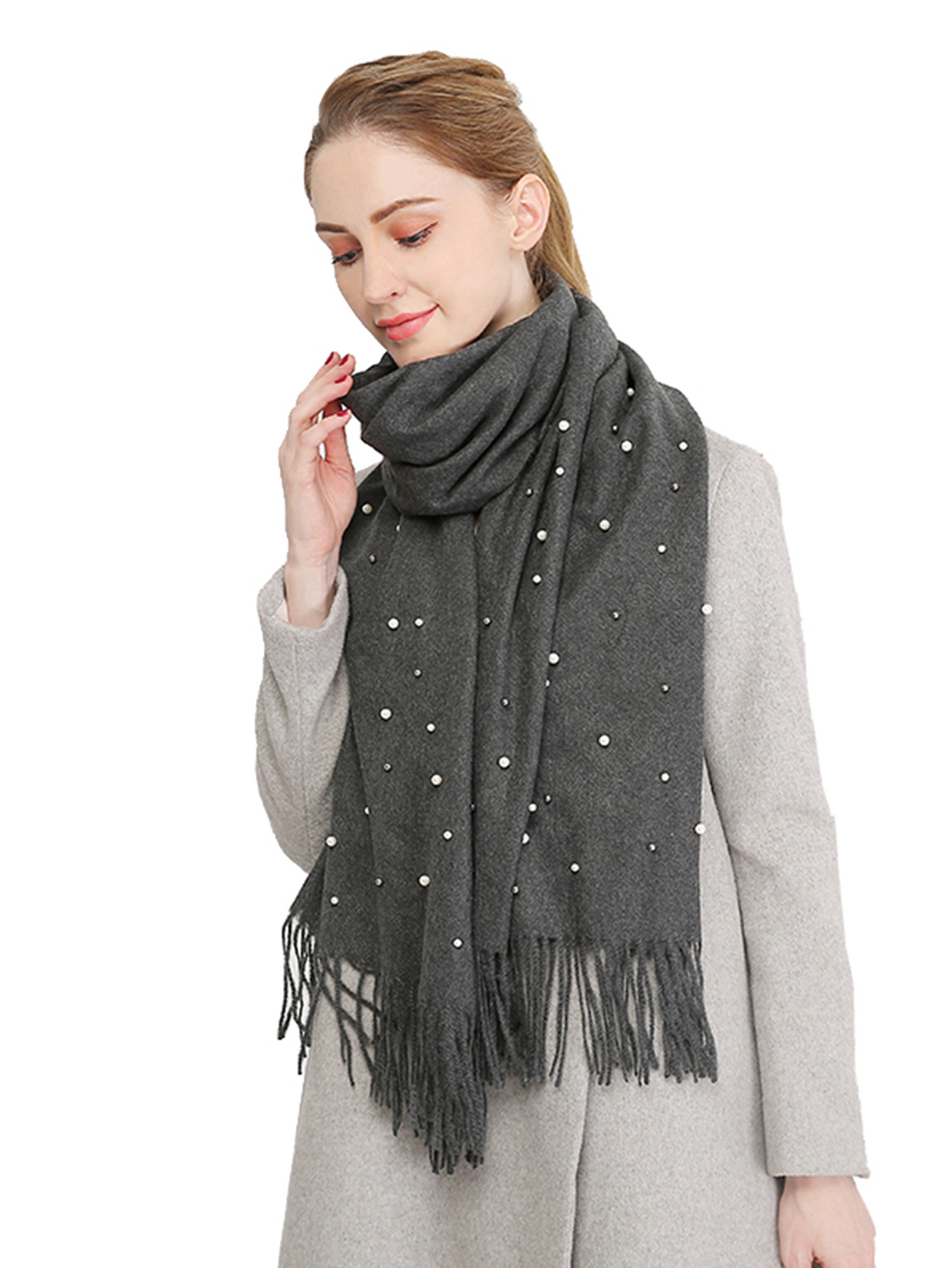 유럽과 미국의 뜨거운 판매 새로운 가을과 겨울 캐시미어 단색 박제 머리 구슬 숄 두꺼운 따뜻한 술 여성 스카프스토어 가기