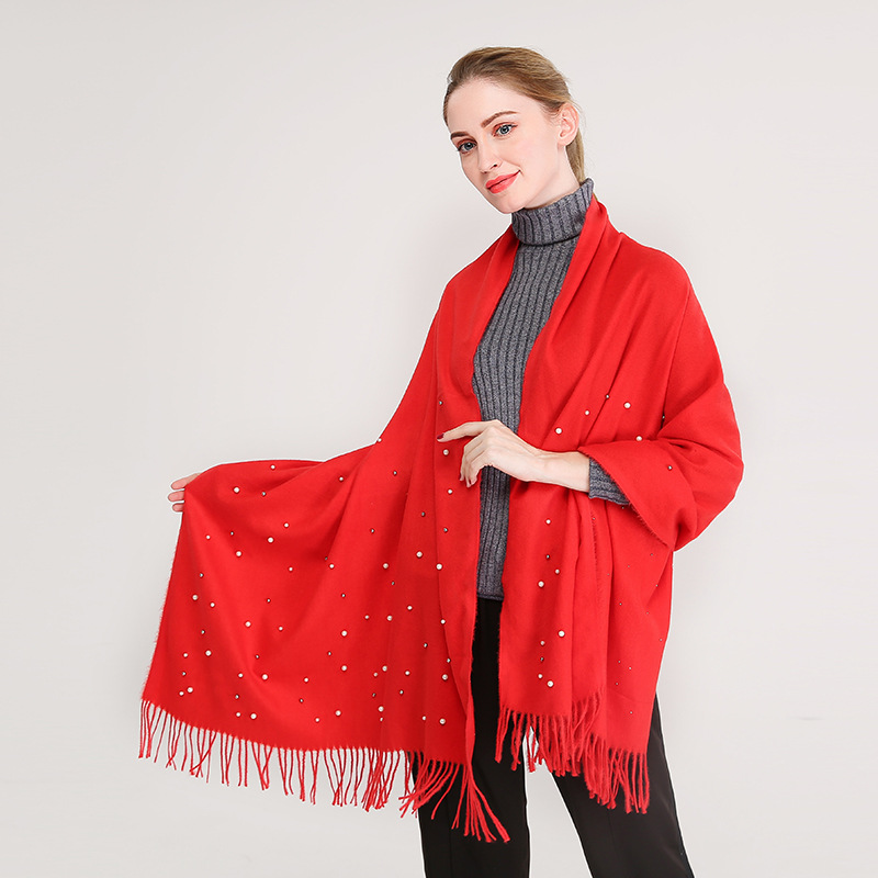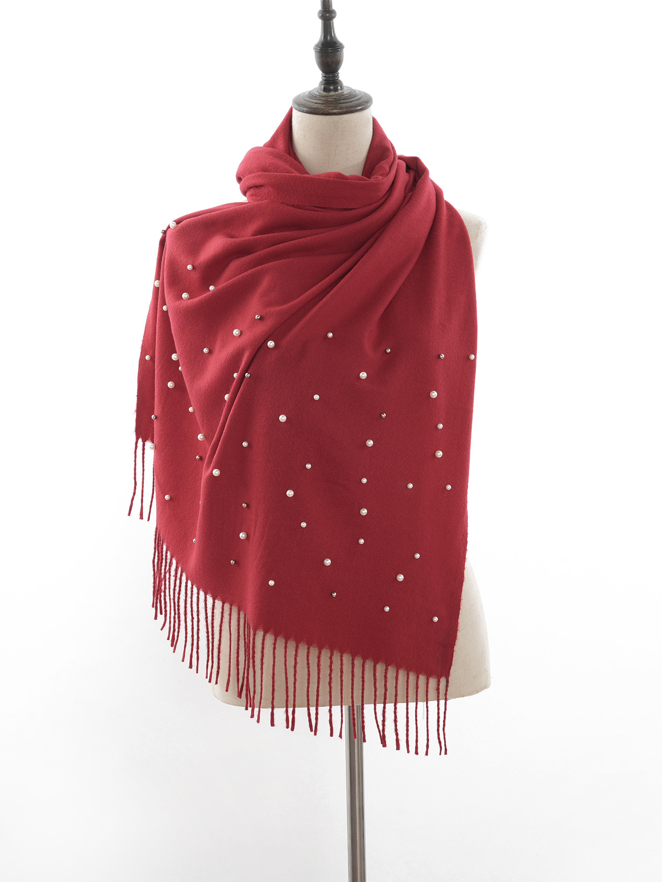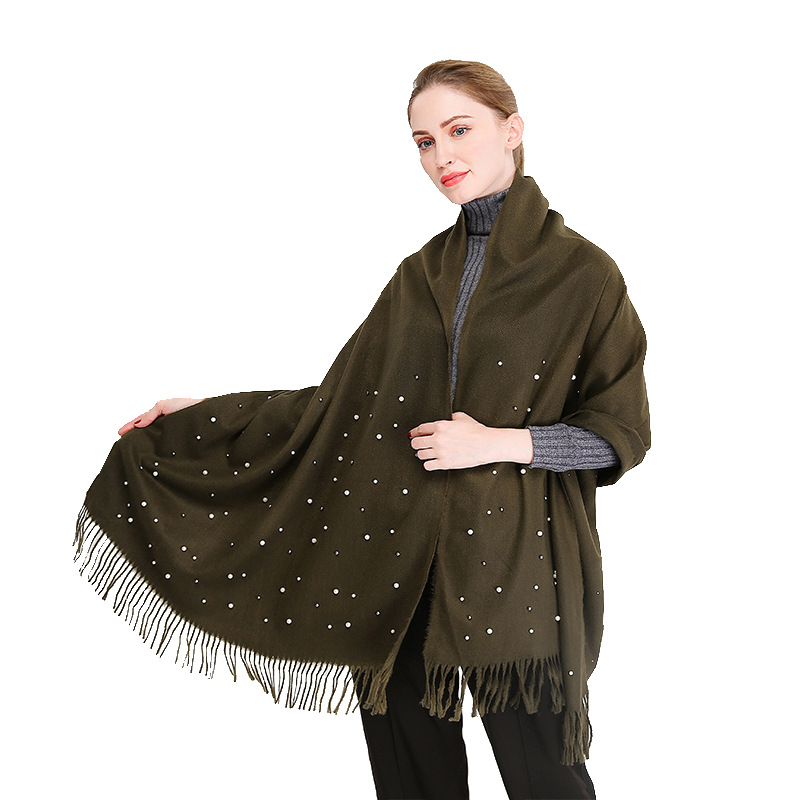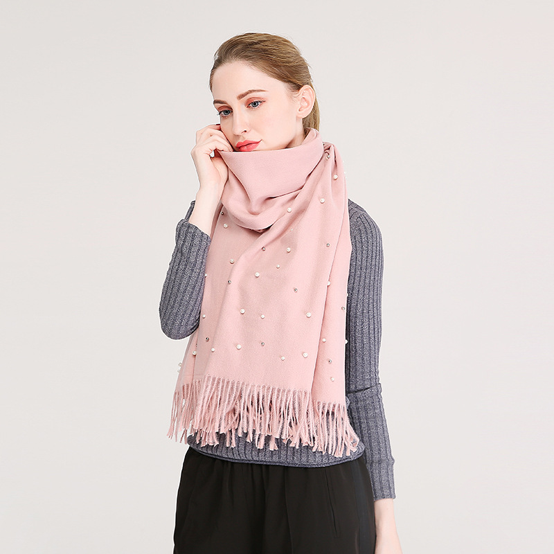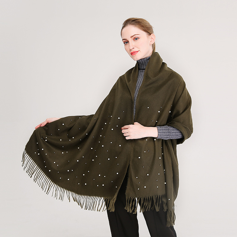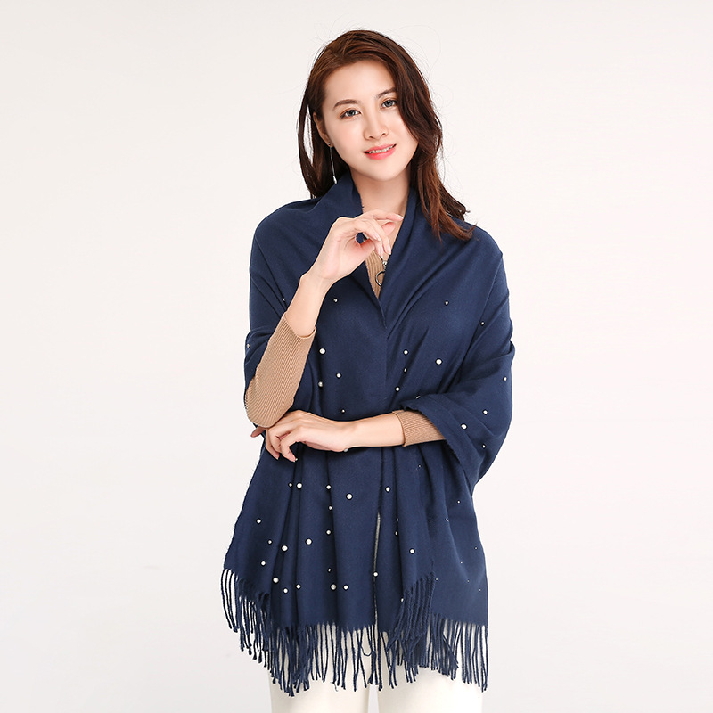 유럽과 미국의 뜨거운 판매 새로운 가을과 겨울 캐시미어 단색 박제 머리 구슬 숄 두꺼운 따뜻한 술 여성 스카프