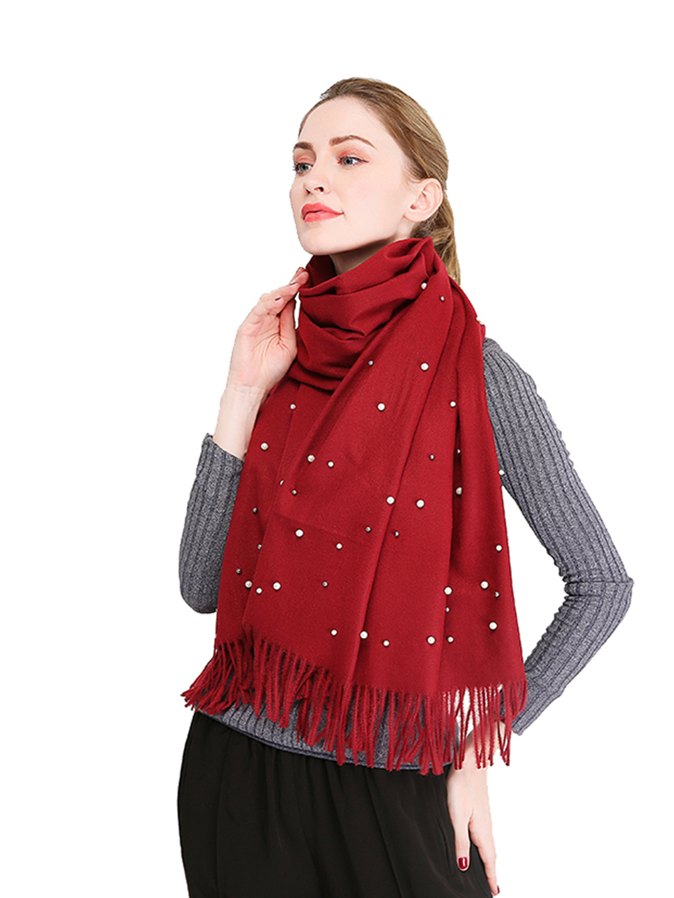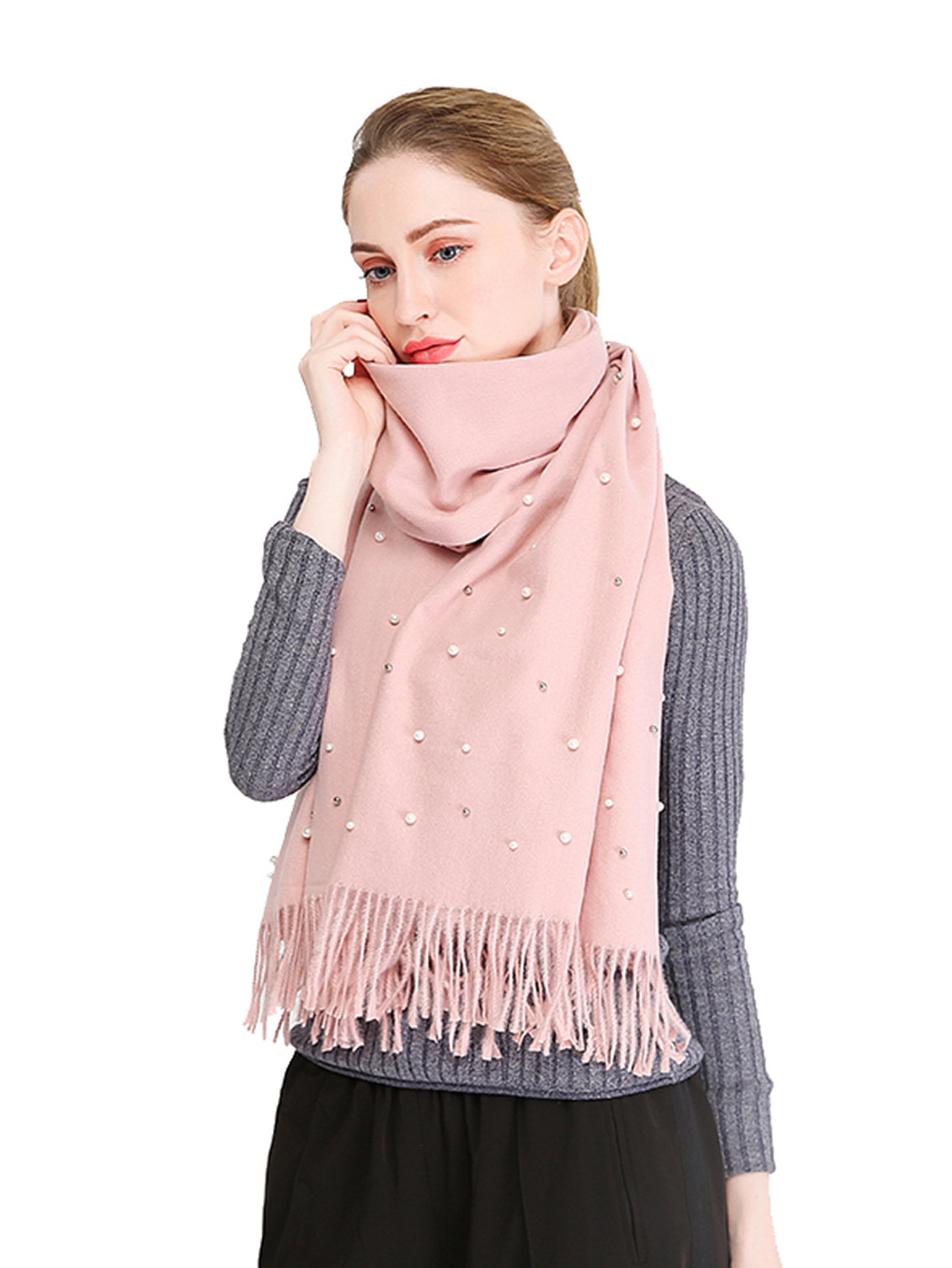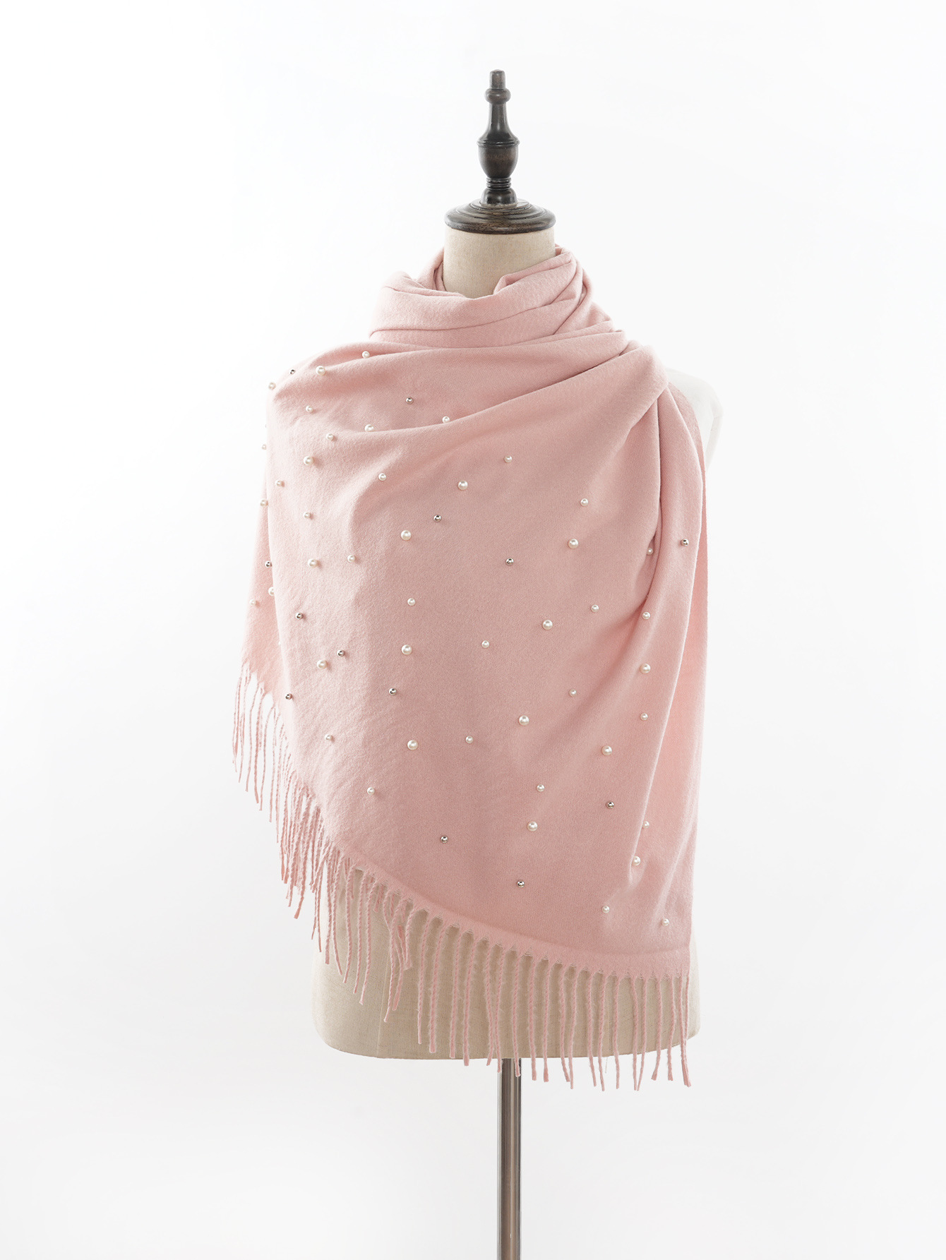 유럽과 미국의 뜨거운 판매 새로운 가을과 겨울 캐시미어 단색 박제 머리 구슬 숄 두꺼운 따뜻한 술 여성 스카프