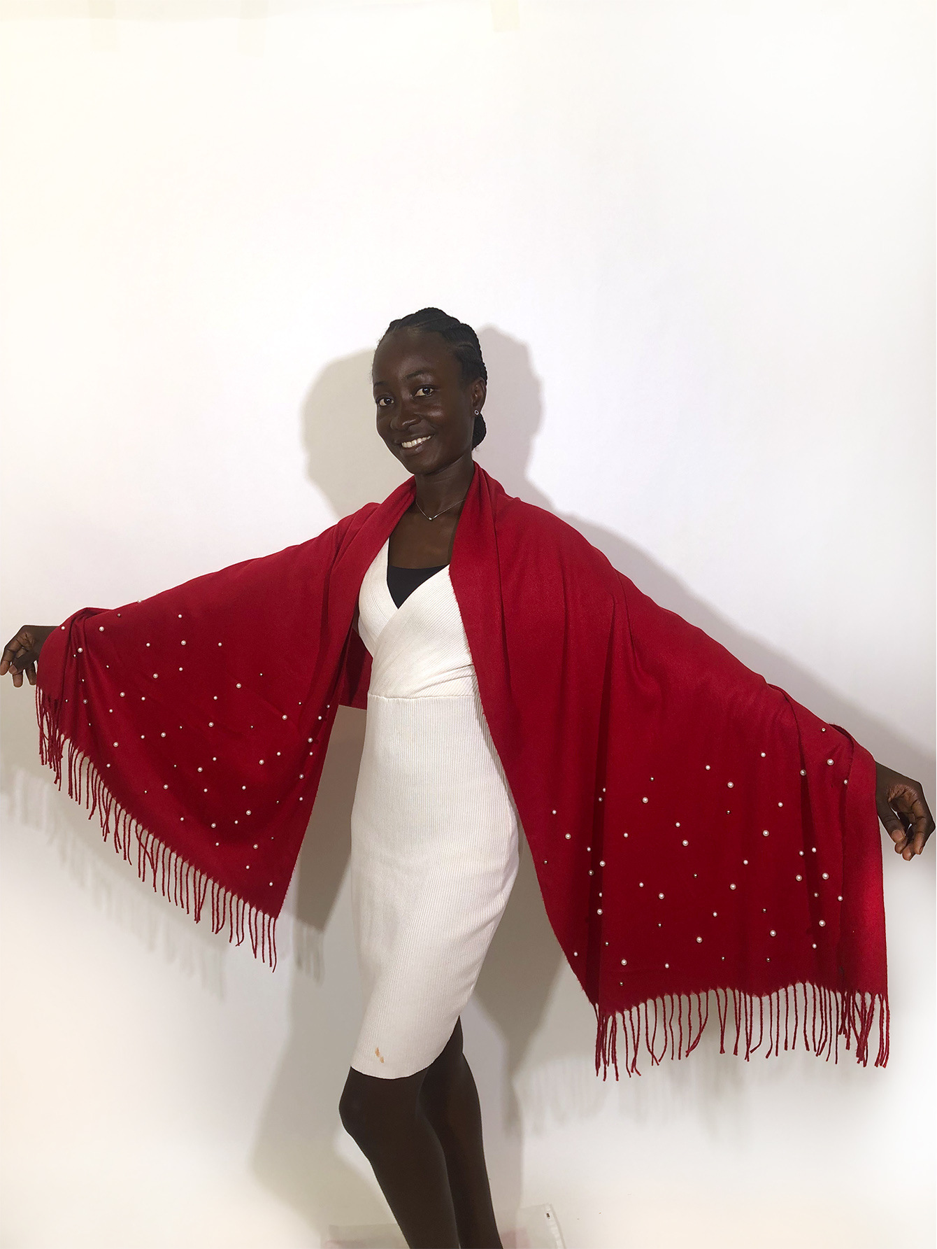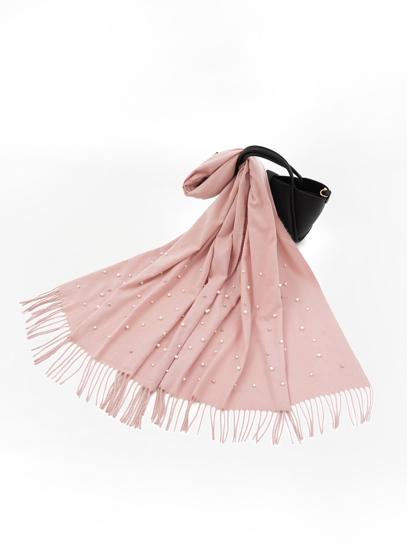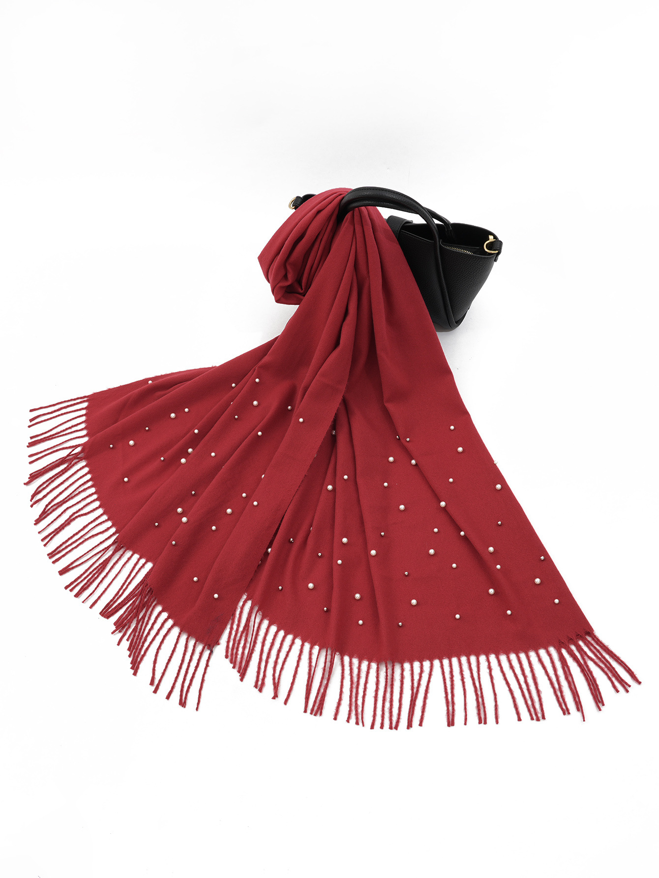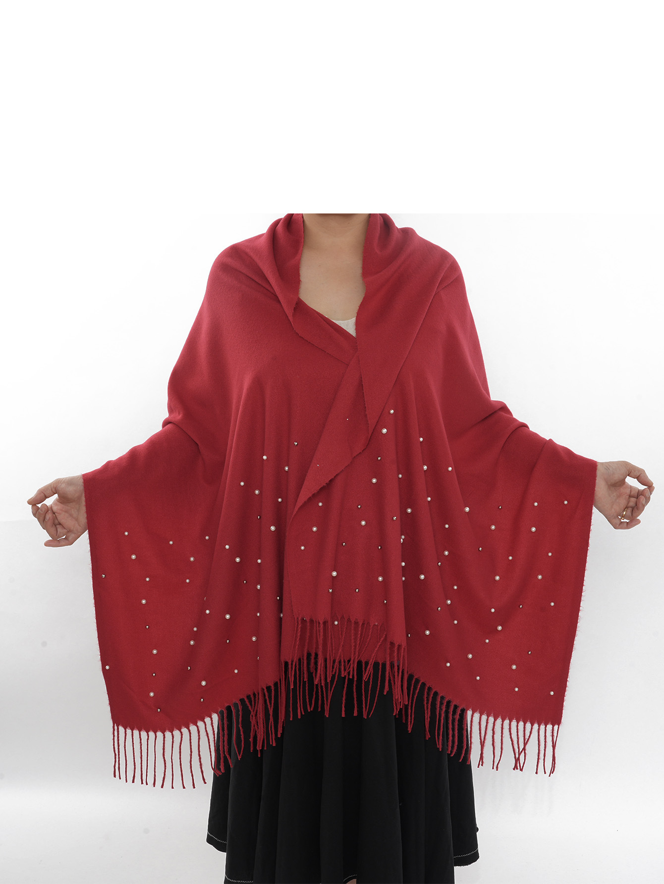 유럽과 미국의 뜨거운 판매 새로운 가을과 겨울 캐시미어 단색 박제 머리 구슬 숄 두꺼운 따뜻한 술 여성 스카프