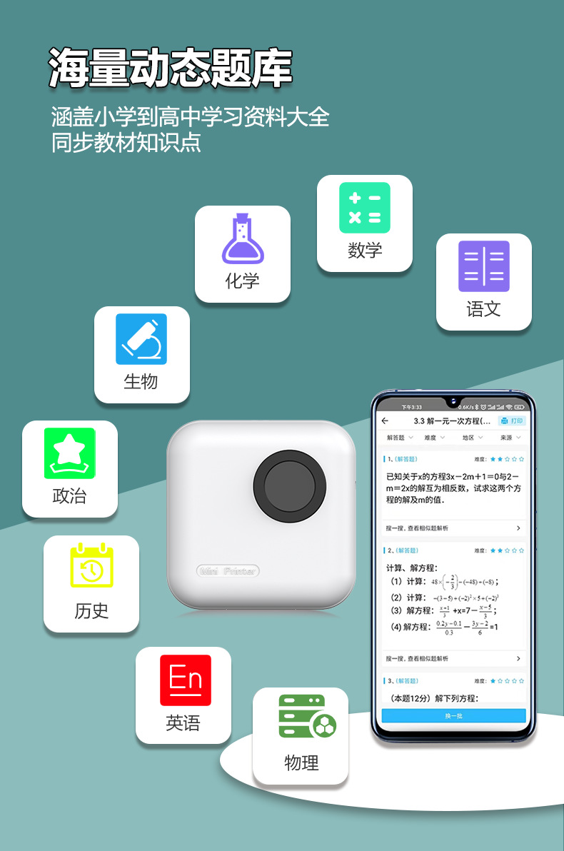 连接方式:蓝牙无线 无墨黑白打印