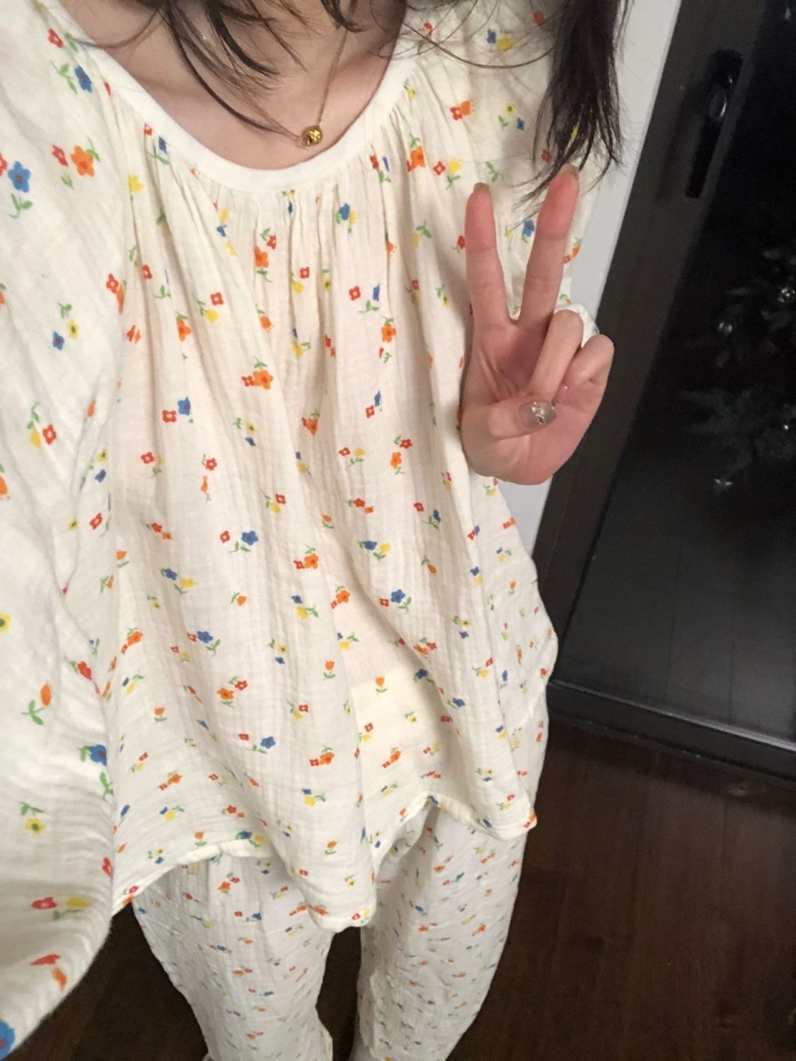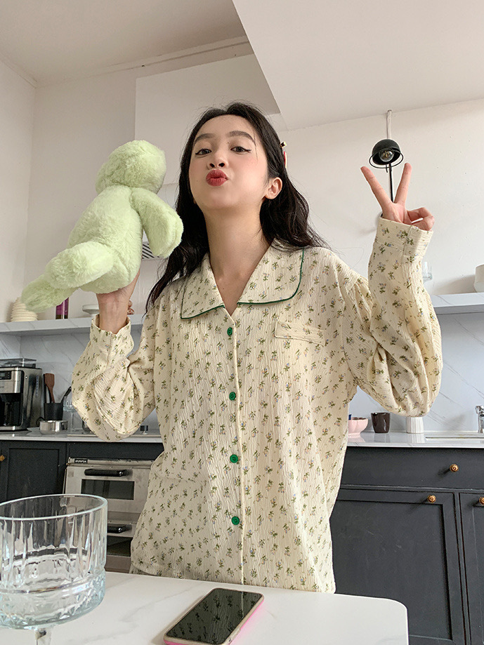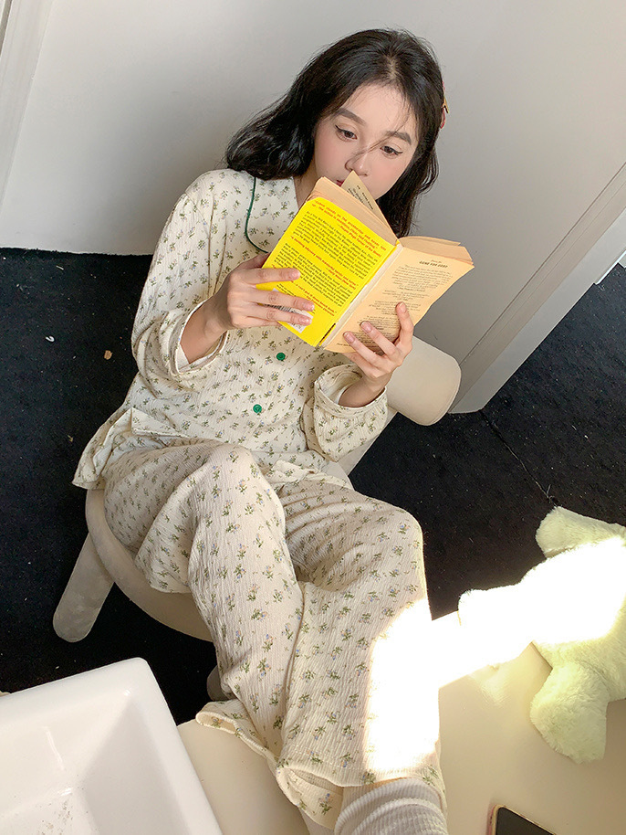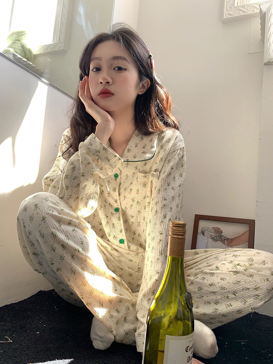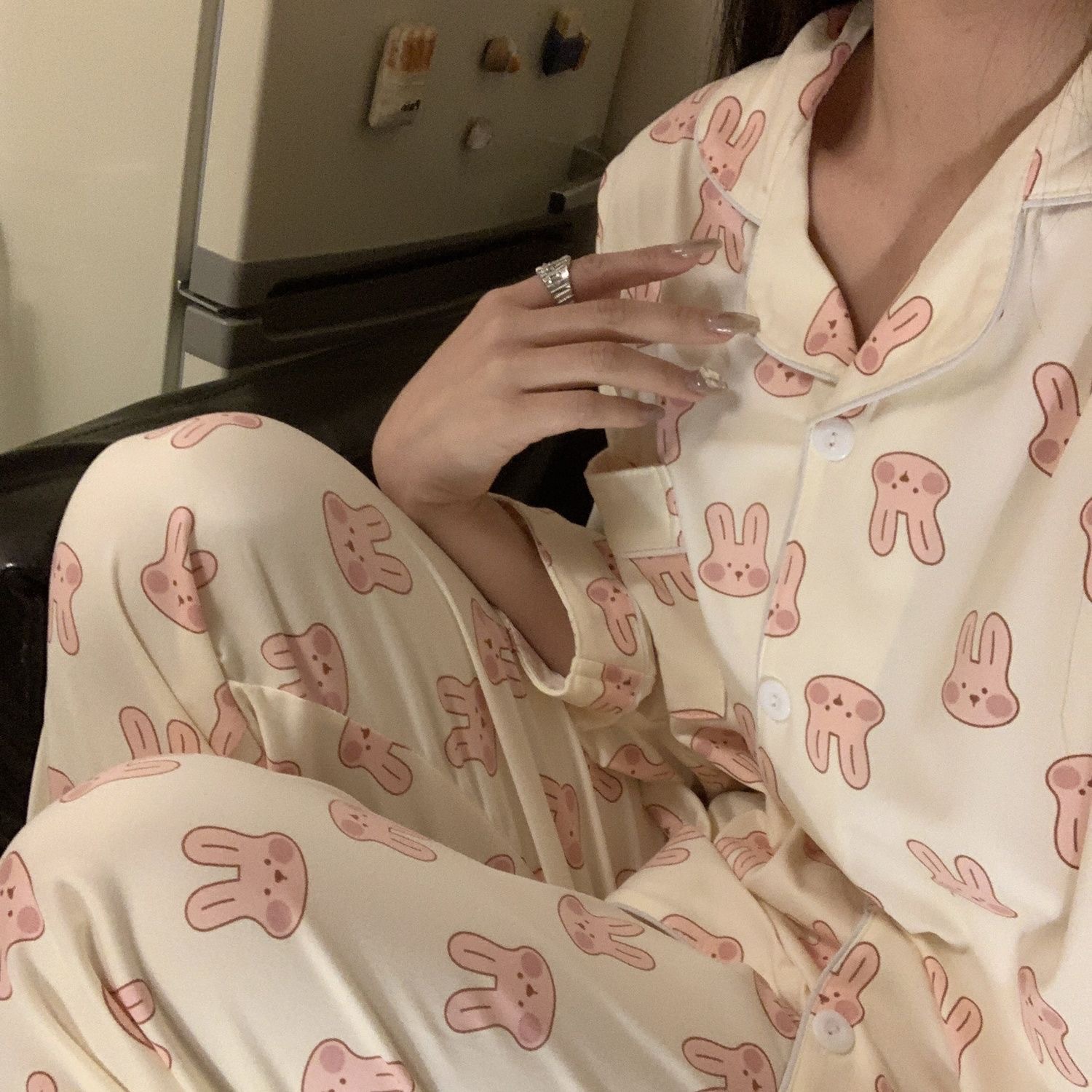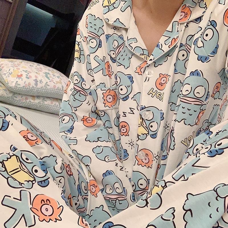 일본식 귀여운 격자 무늬 키티 고양이 잠옷 여성용 봄과 가을 긴팔 바지 학생용 투피스 의상스토어 가기