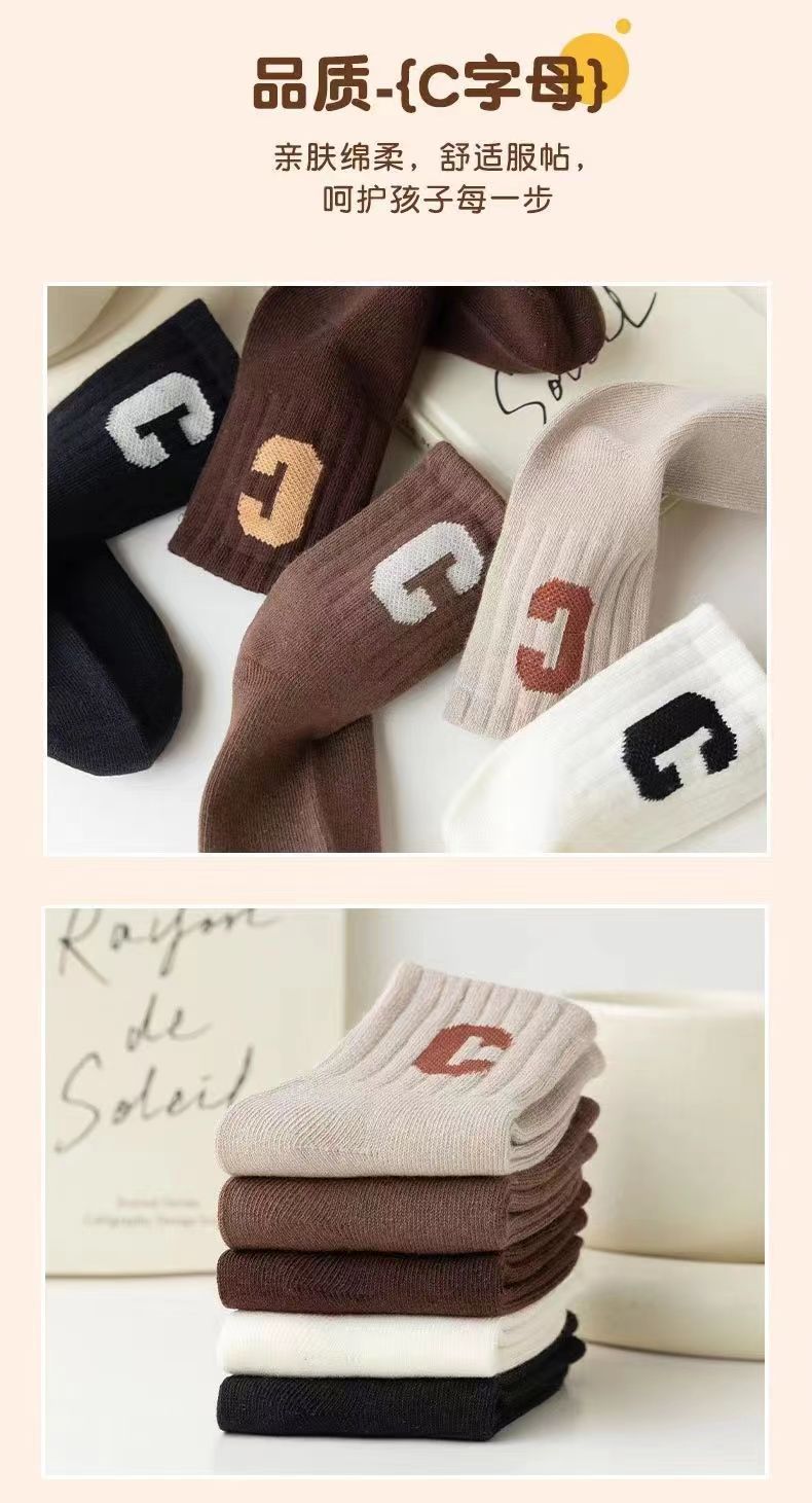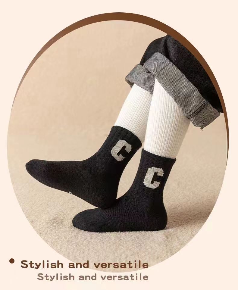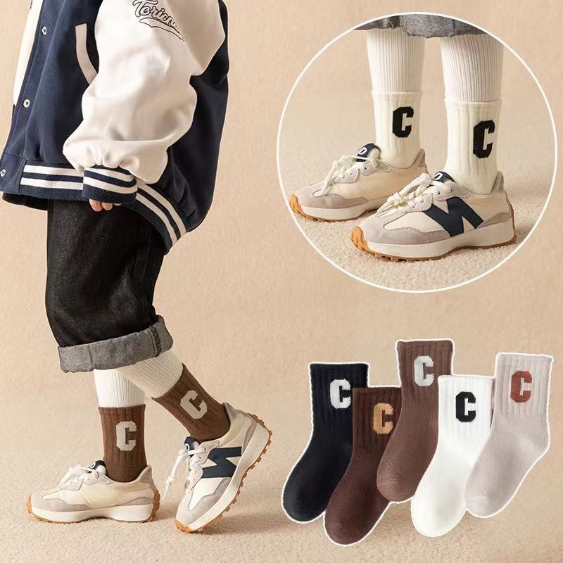어린이 스포츠 유행 양말 소년 소녀 미드 튜브 양말 C 글자 테리 양말 가을과 겨울 어린이 양말 인터넷 인기있는 아기 양말스토어 가기