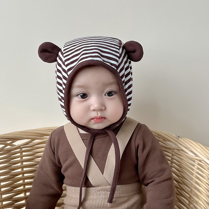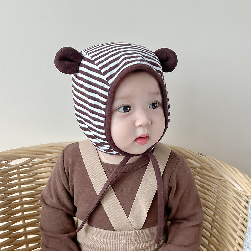 아기 모자 봄과 가을 면화 아기 소년과 소녀 줄무늬 귀 보호 캡 귀여운 귀 신생아 폰타넬 머리 보호 캡