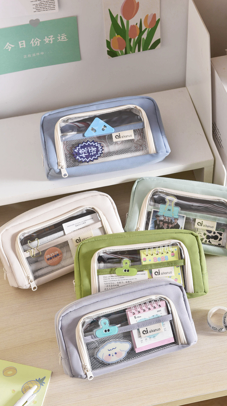 Ecano 전면 창 투명 필통 대용량 문구 상자 높은 색상 값 간단한 보관 가방