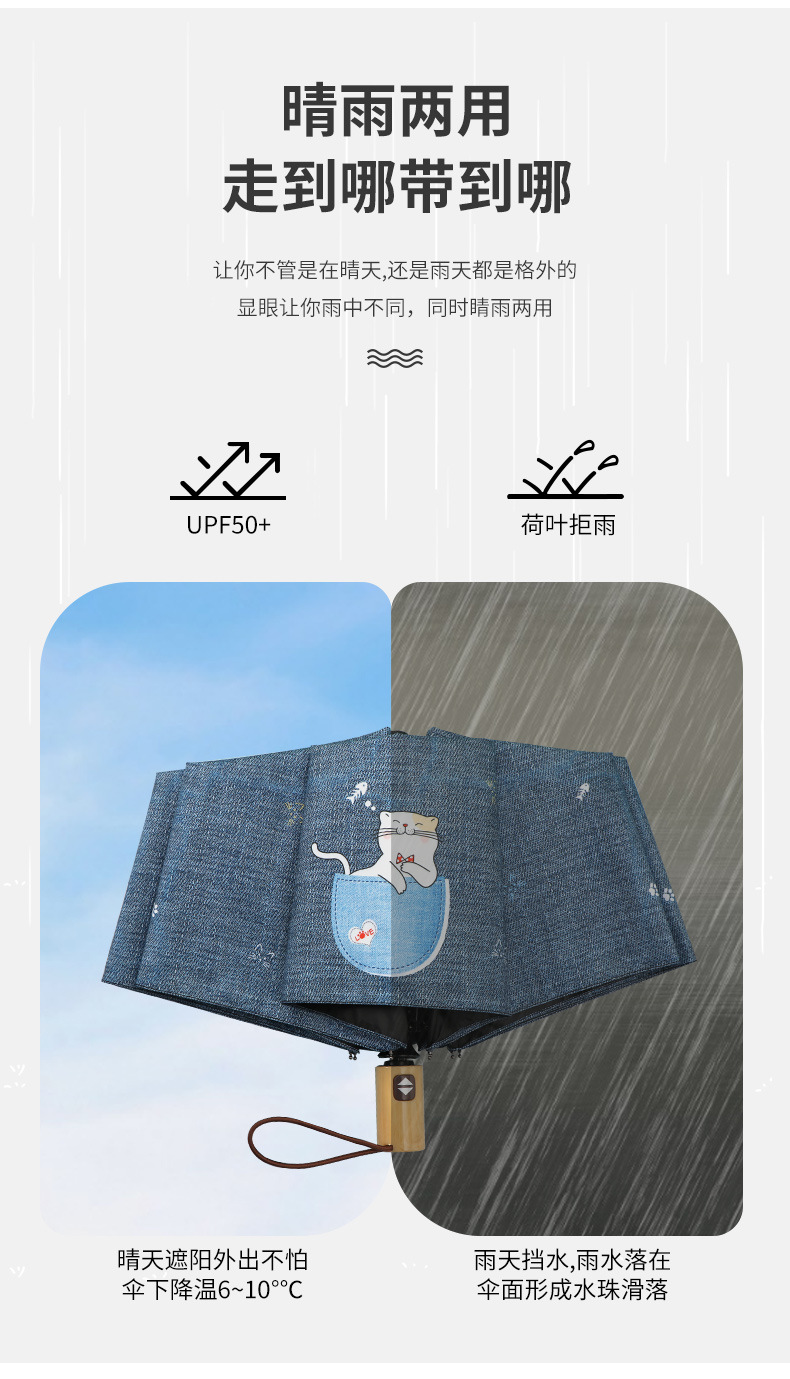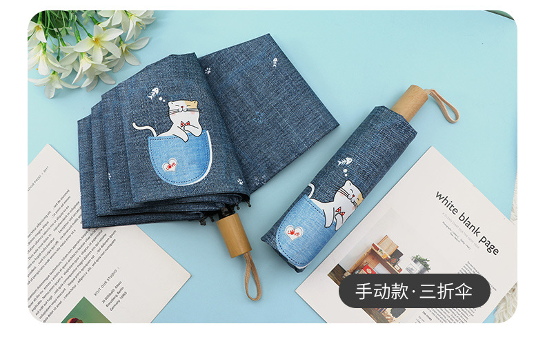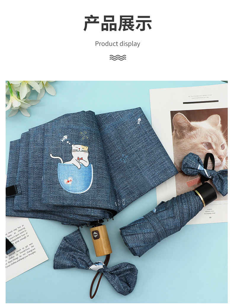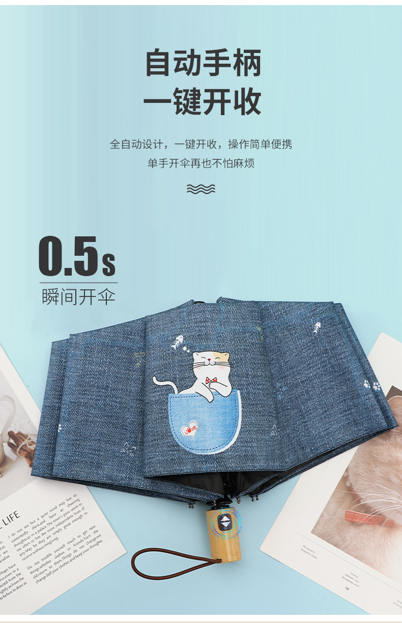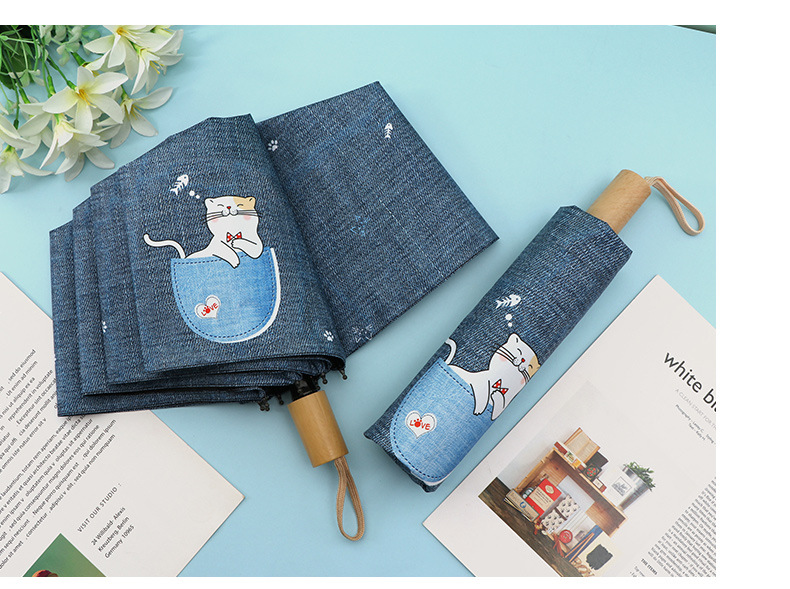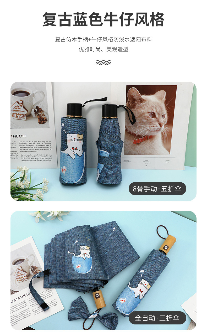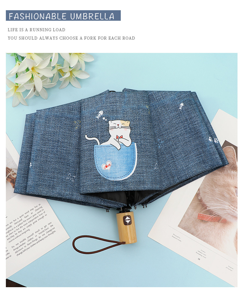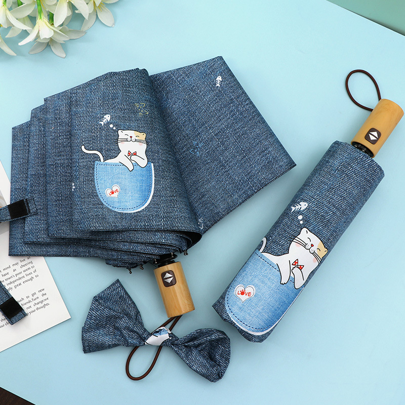 • 업그레이드 3 배 우산-데님 새끼 고양이