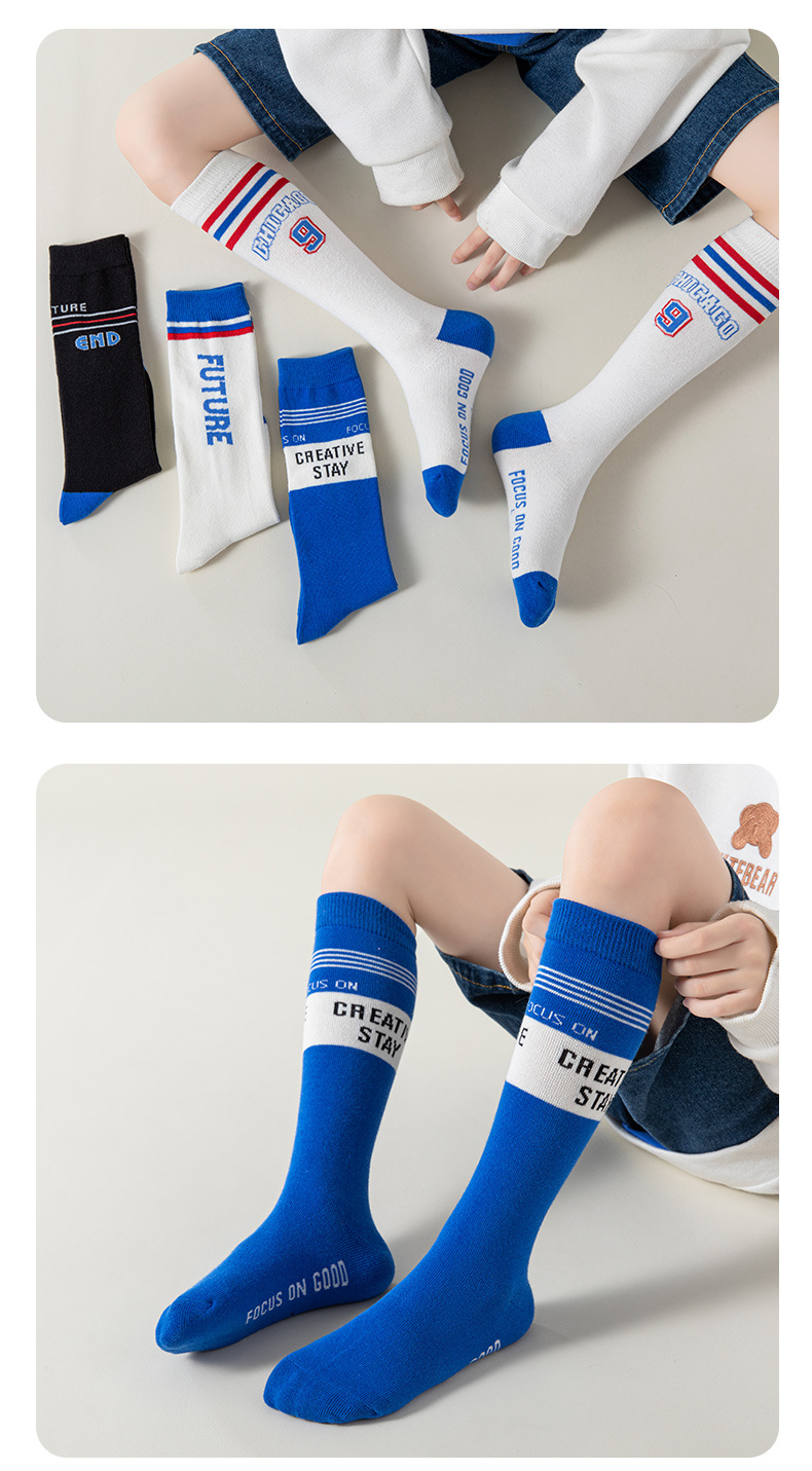 사이버 레드 클라리온 블루 소년 새끼 양말 모든 경기 스포츠 스타일 스트라이프 편지 축구 양말 하이 배럴 봄과 가을 스포츠 양말스토어 가기