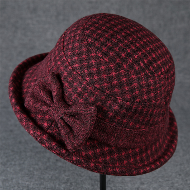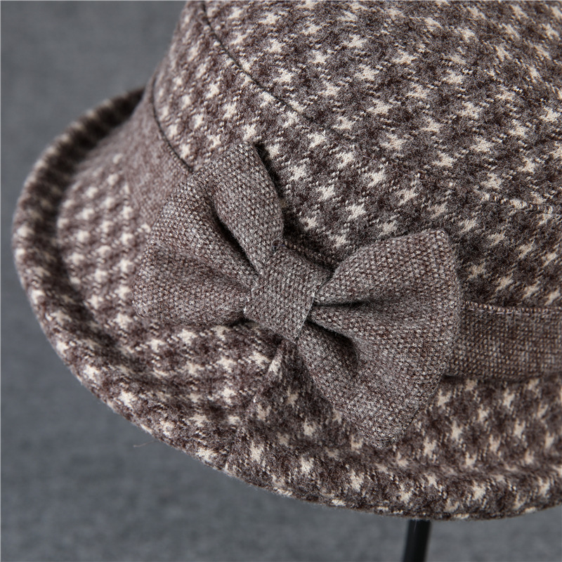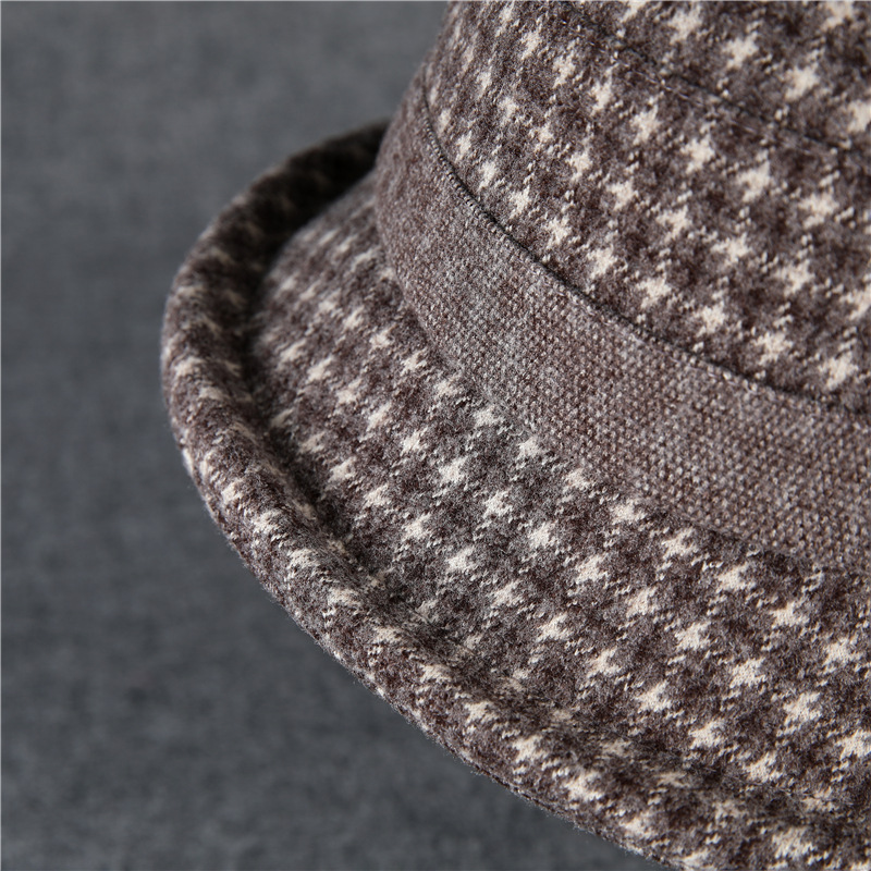중년 및 노인 모직 분지 모자 할머니 두꺼운 따뜻한 컬링 어부 모자 활 어머니 모자 체크 패턴 빈티지스토어 가기