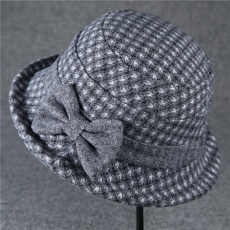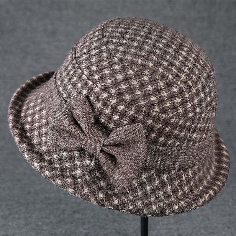중년 및 노인 모직 분지 모자 할머니 두꺼운 따뜻한 컬링 어부 모자 활 어머니 모자 체크 패턴 빈티지