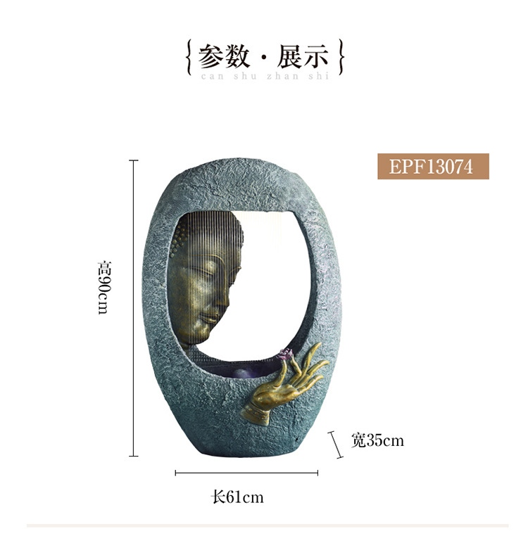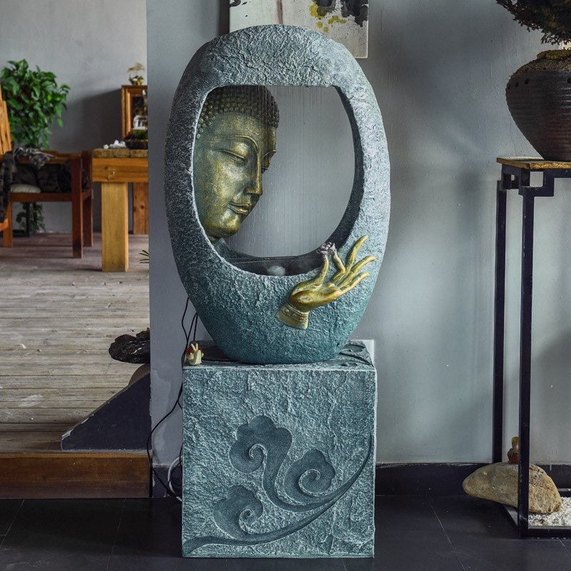 부처 동상 분수 새로운 중국 선 스타일 홈 장식 인테리어 풍경 거실 순환 물 행운의 바닥 장식