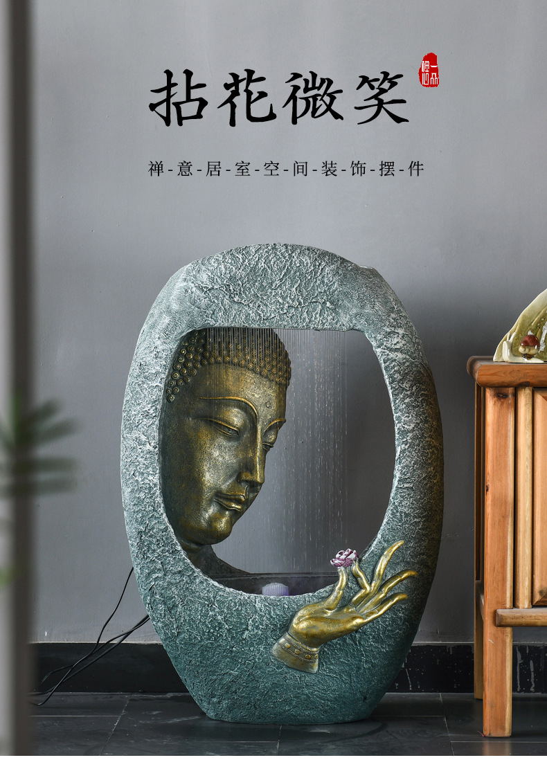 부처 동상 분수 새로운 중국 선 스타일 홈 장식 인테리어 풍경 거실 순환 물 행운의 바닥 장식스토어 가기
