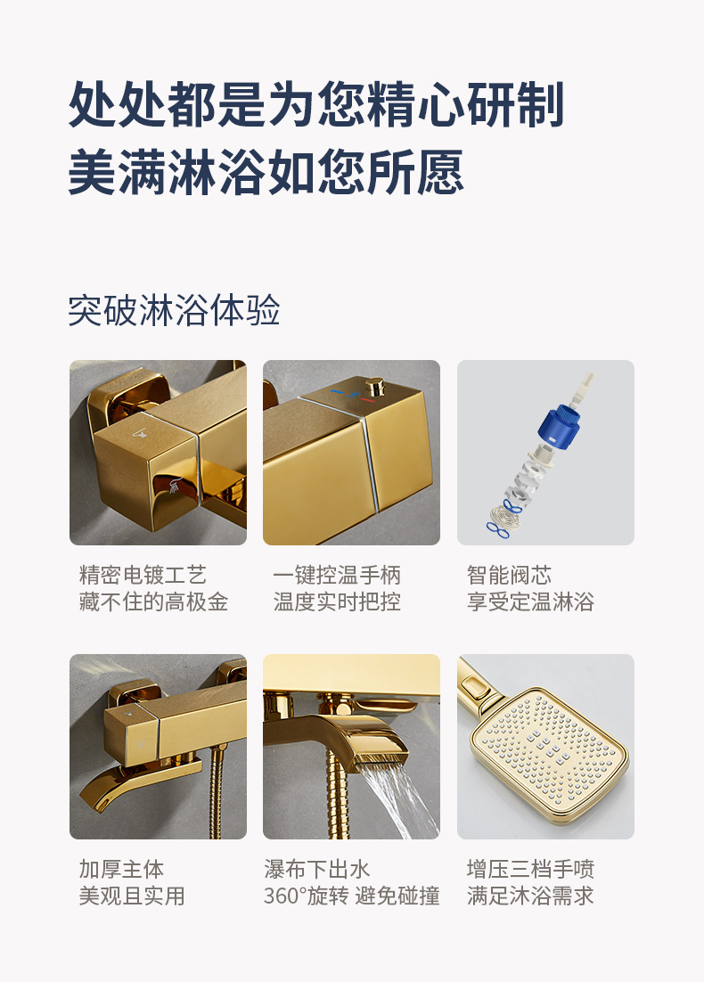 • C1 라이트 럭셔리 골드 일정 온도 첫 번째 기어 심플 샤워 [원 버튼 잠금 온도]