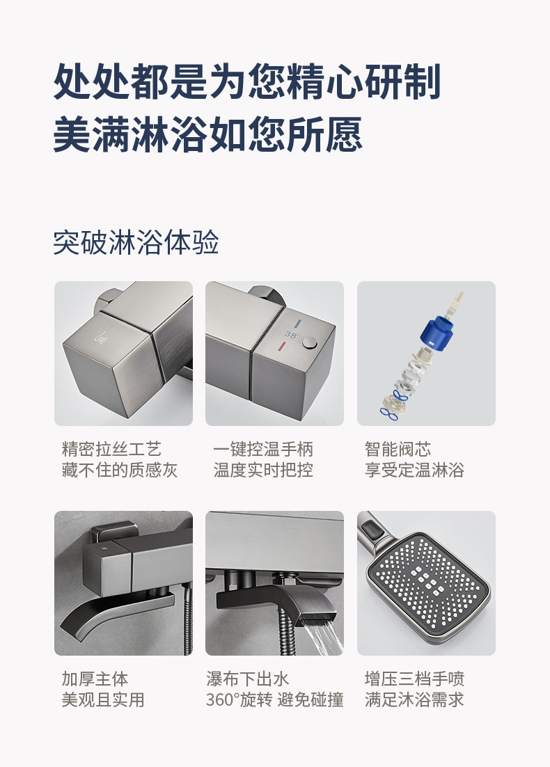 질감 총 회색 샤워 세트 가정용 욕조 수도꼭지 화장실 욕실 간단한 샤워 샤워 헤드스토어 가기