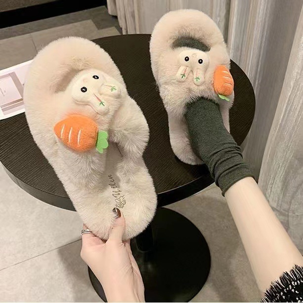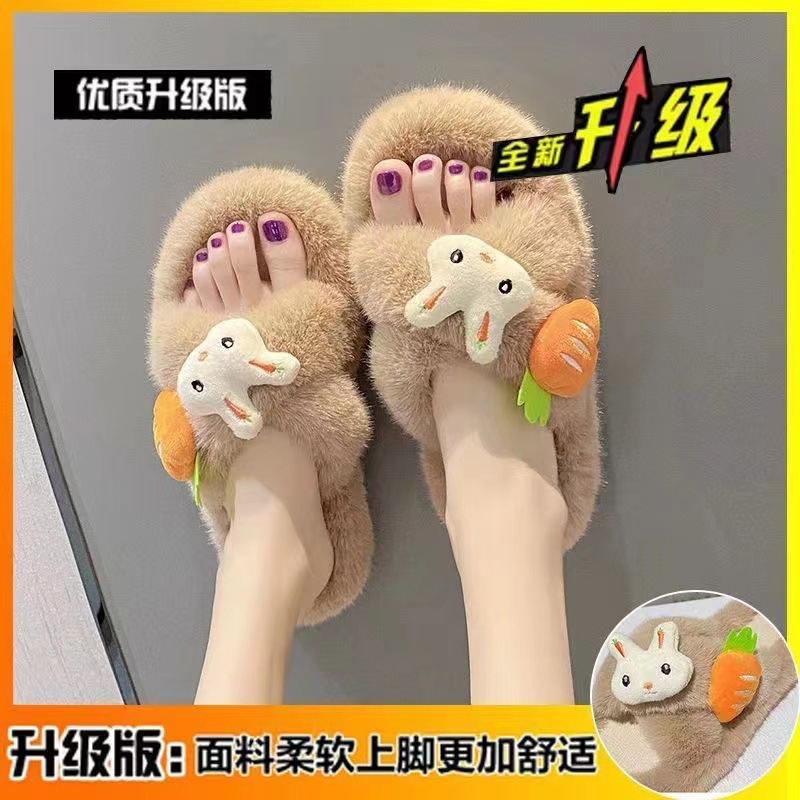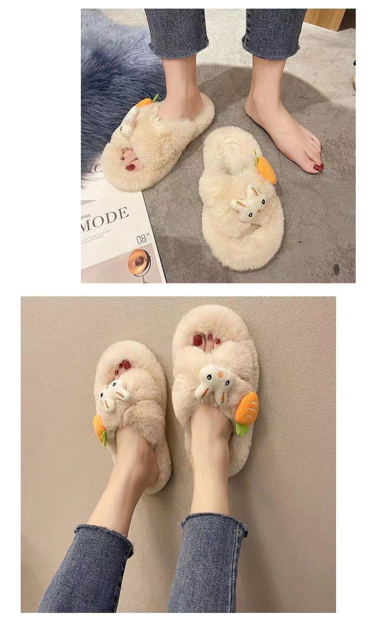 2023 가을과 겨울 인터넷 인기 Maomao 면 슬리퍼 여성용 귀여운 가리 하트 교차 한 단어 두꺼운 바닥 미끄럼 방지 홈스토어 가기