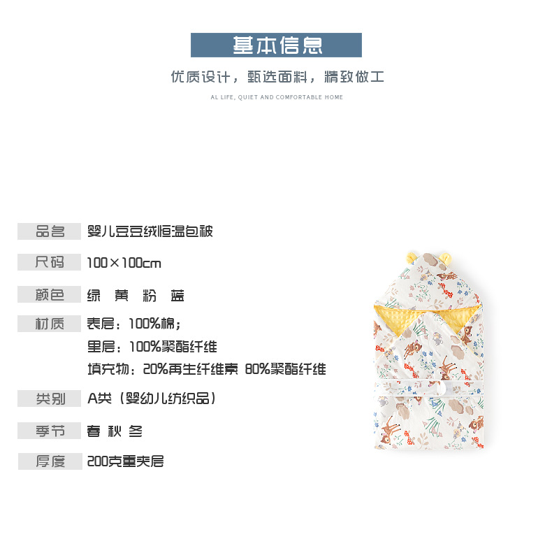 신생아를위한 신생아 일정한 온도 완두콩 벨벳 가방 이불 순면 가을과 겨울 아기 이불 포대기 방 용품