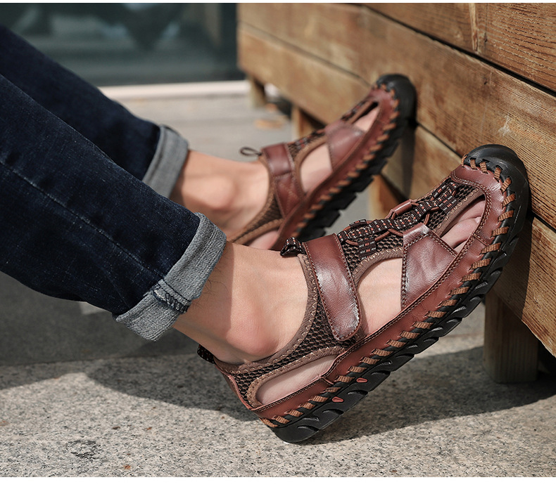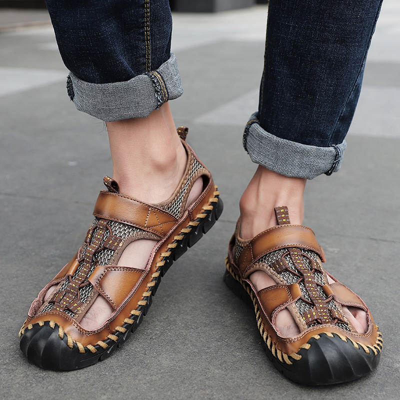 국경 간 스타일 샌들 남성 여름 새로운 정품 가죽 캐주얼 스포츠 통기성 야외 경량 캐주얼 신발 남성