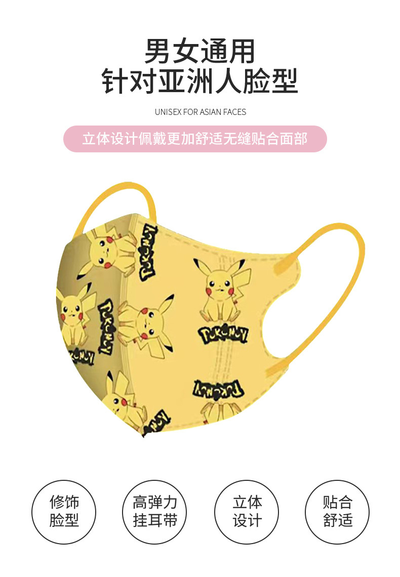 독립 신피카츄 마스크 3d 입체 아동 마스크 하이 컬러 값 보호 마스크 3-12 세 학교 스페셜