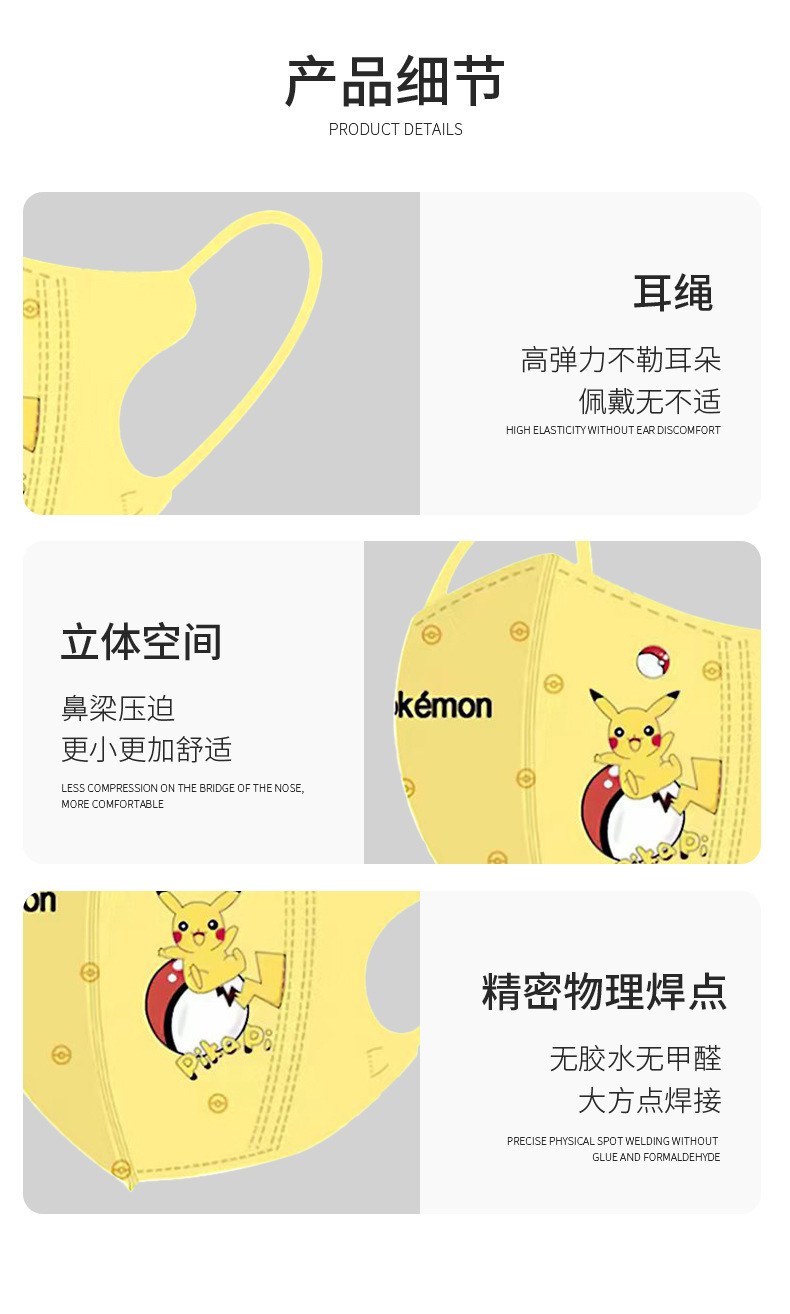 독립 신피카츄 마스크 3d 입체 아동 마스크 하이 컬러 값 보호 마스크 3-12 세 학교 스페셜스토어 가기