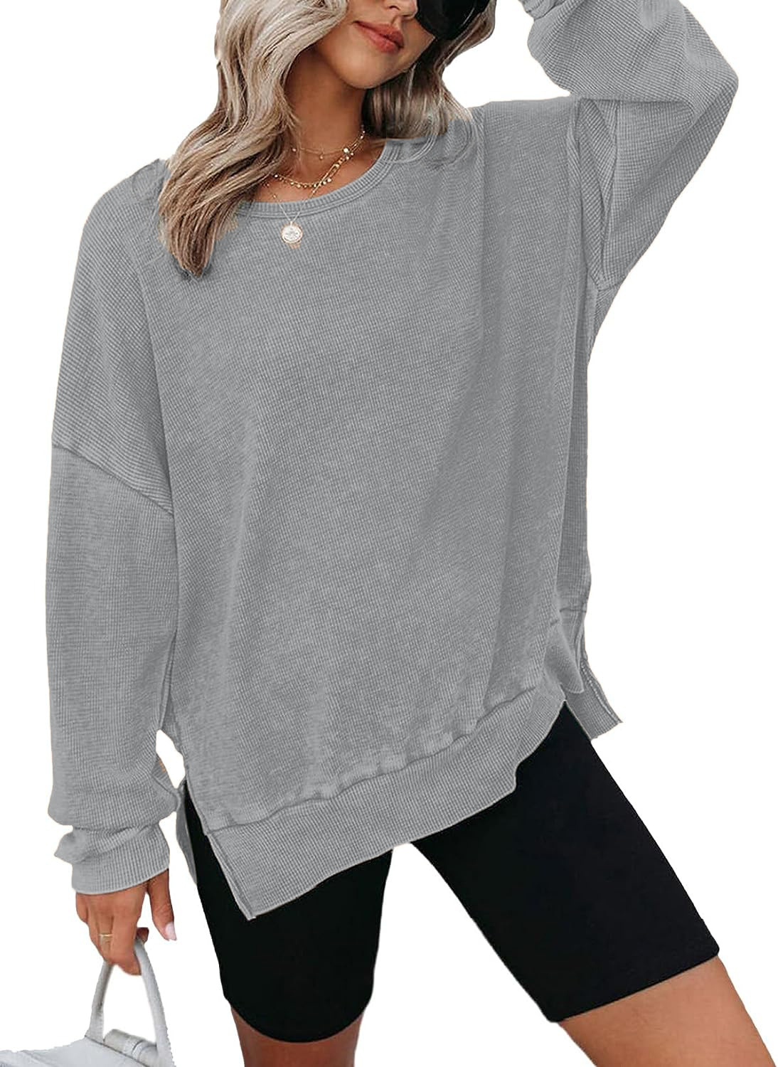 2025 유럽과 미국의 국경 간 여성 의류 Amazon 가을 새로운 라운드 넥 긴팔 사이드 슬릿 와플 스웨트 셔츠 여성용스토어 가기